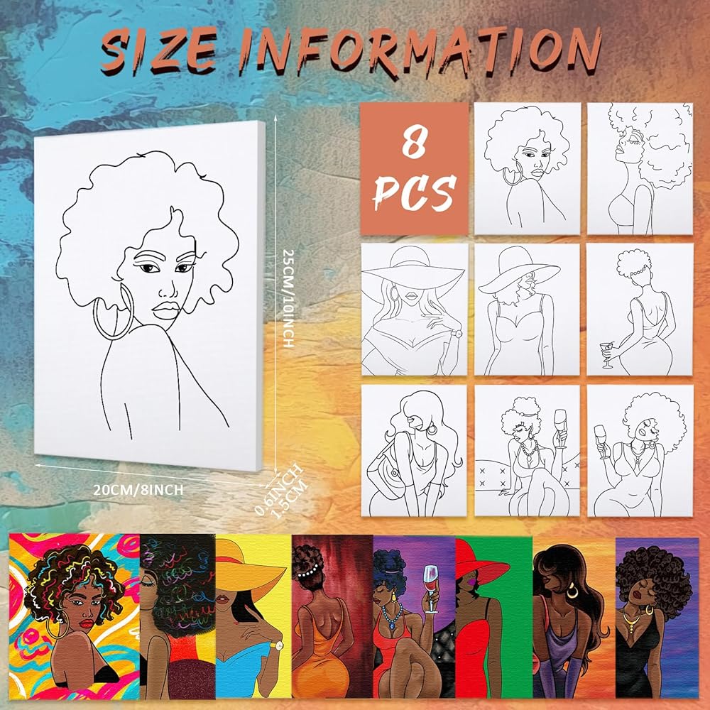 [8 Different Patterns] The Lady-Themed canvas has 8 styles to meet any style needs, including Chic Girl, Afro Queen, BLM Girl, Elegant Ladies, etc. Even without any prior experience, you can find joy in this collection of works.