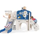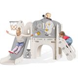 🤝 Worry-Free Purchase - The toddler play set is designed for both indoor and outdoor use. Product dimensions: 59.8" x 60.6" x 40.2", it can be easily assembled without additional tools. The heightened guardrails enhance safety during play. Free returns!
