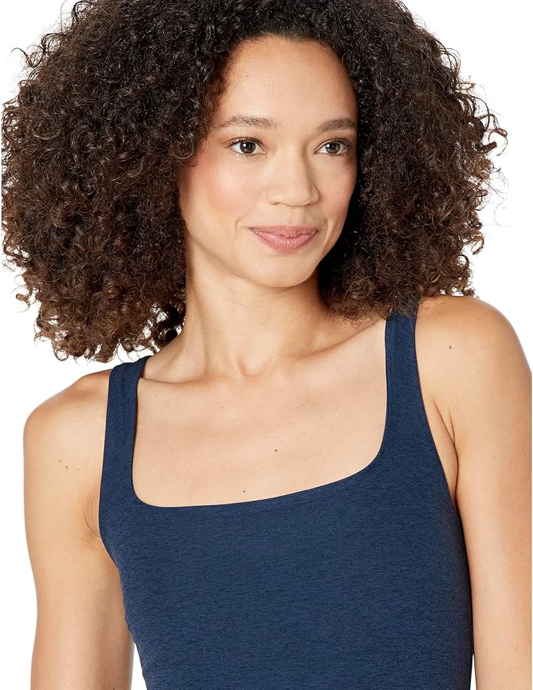 Square neck, Built-in bra, Slit at side, Reflective logo print at back