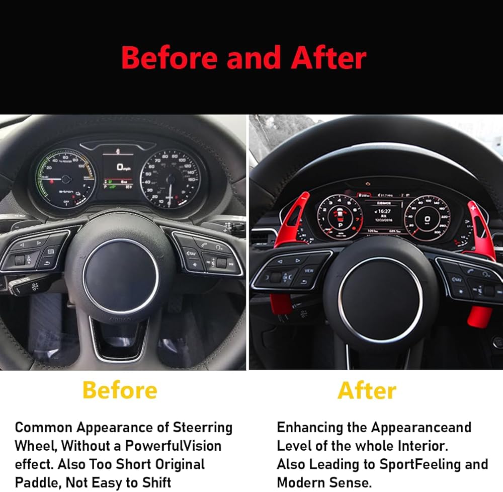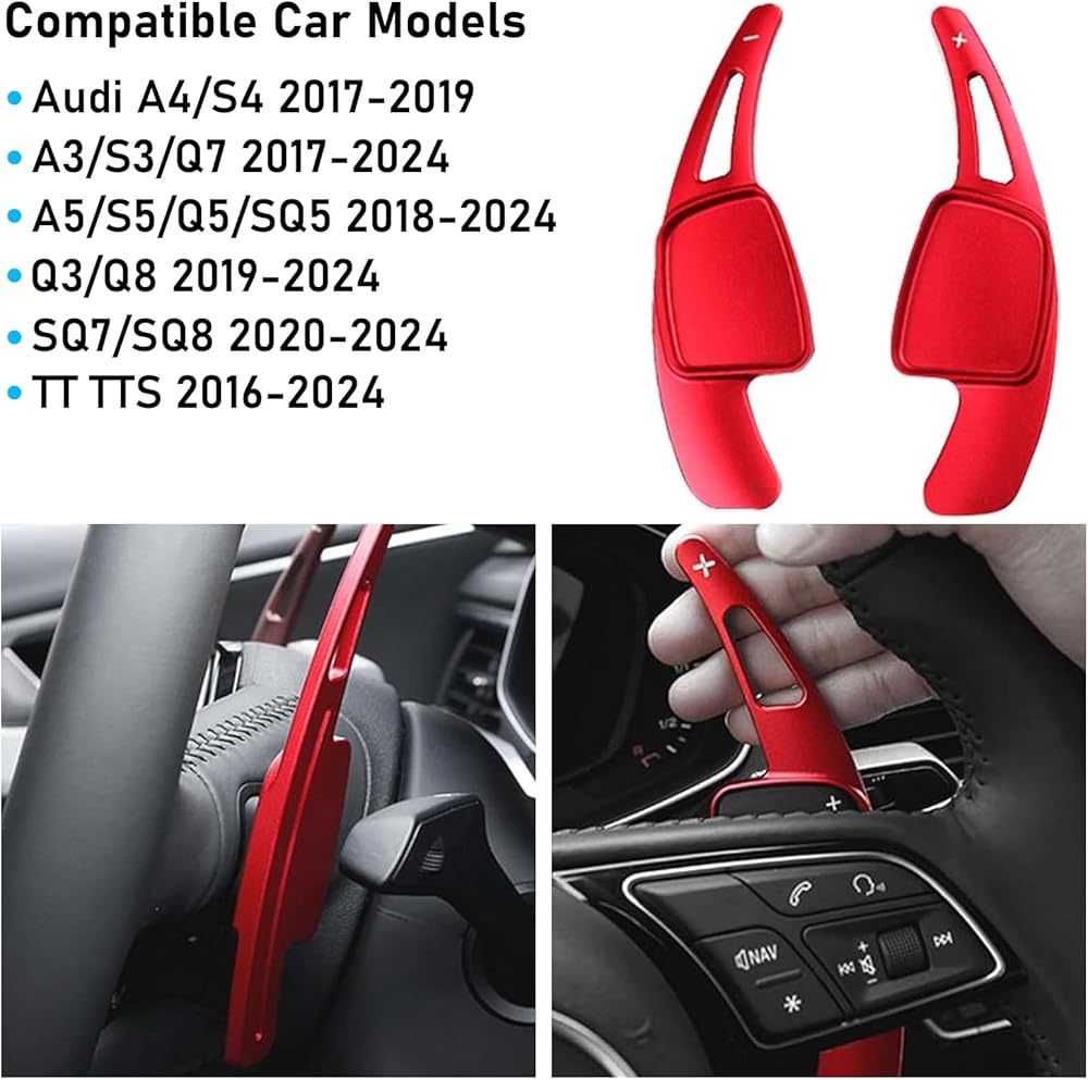 Compatible Vehicle Of Paddle Shifter Extender: For A4/S4 2017-2019, A3/S3/Q7 2017-2024, A5/S5/Q5/SQ5 2018-2024, Q3/Q8 2019-2024, SQ7/SQ8 2020-2024, TT TTS 2016-2024. Please confirm the original paddle shifter back of your car steering wheel from Picture 6 before you order them. Does not fit A6, A7, A8, e-tron, R8, RS 3, RS 5, RS 6, RS 7, RS Q8, S6, S7, S8, TT RS.