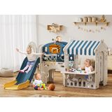 ❇️ Indoor and Outdoor Use - Toddler playset is designed for both indoor and outdoor use. With dimensions of 76.8" x 59.1" x 43.3", which can be easily assembled and disassembled without additional tools. The heightened guardrails enhance safety during play.