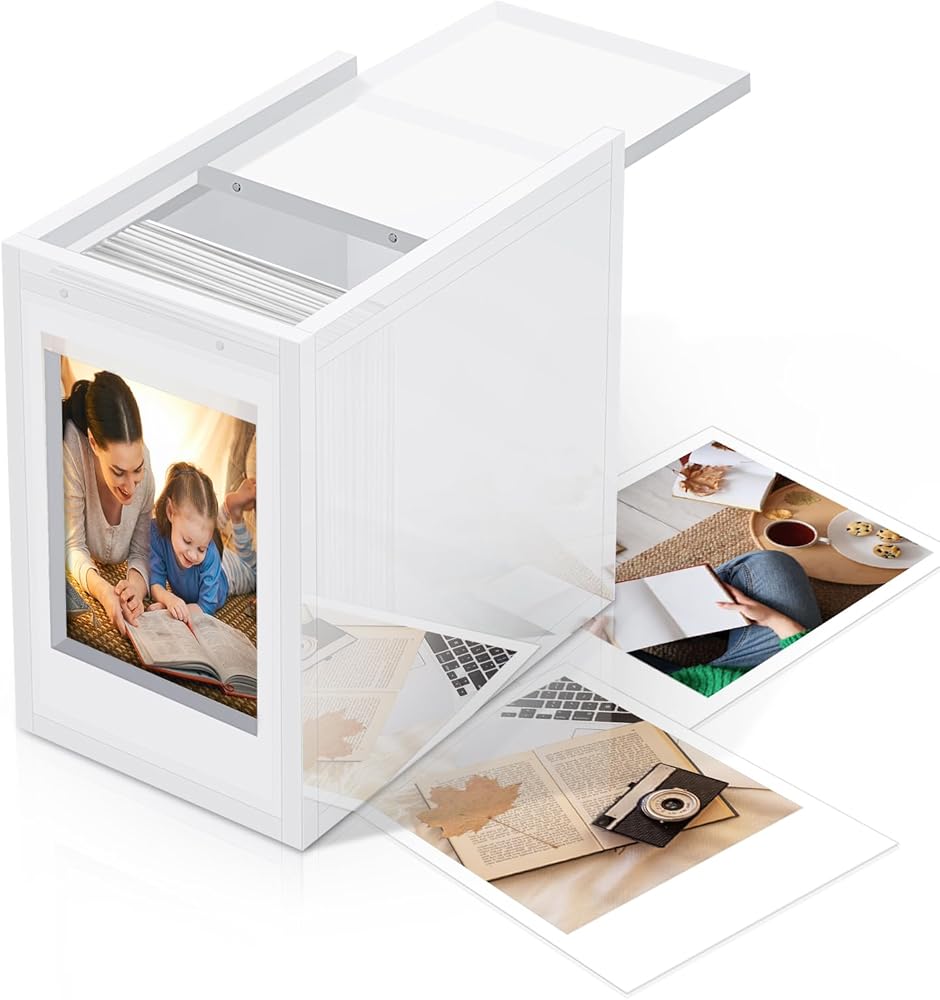 Photo Storage Box:Made of high quality acrylic, reusable, not easily dented or torn. The lid is designed to keep photos permanently and prevents sunlight, air and moisture from entering the frame; it will not turn yellow, brittle or fade over time.