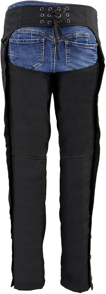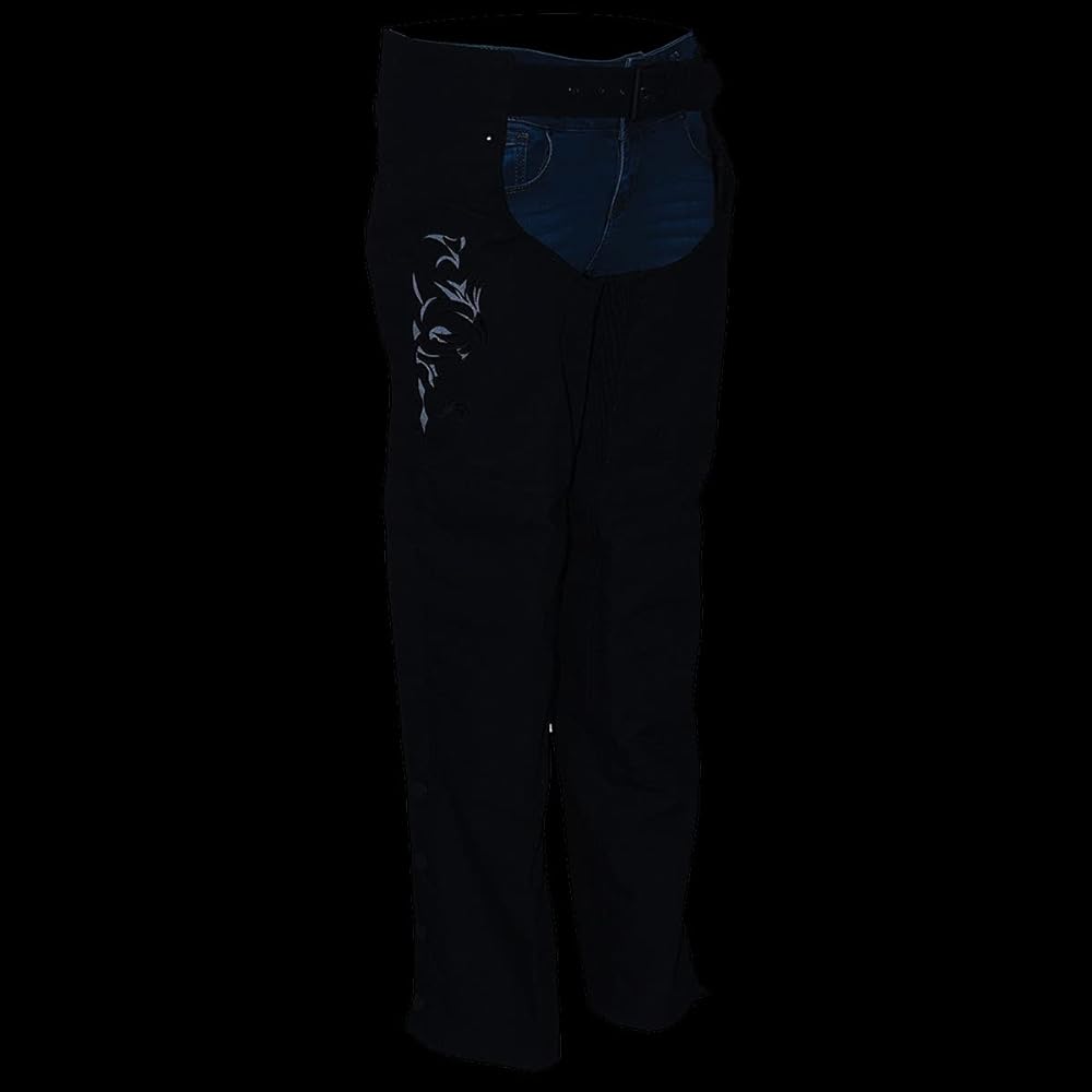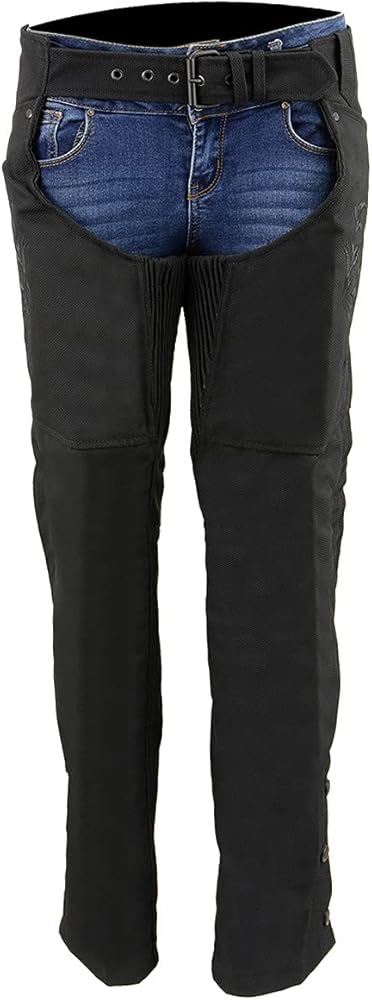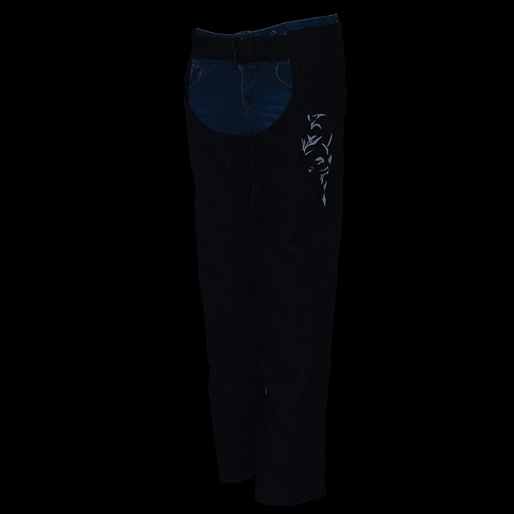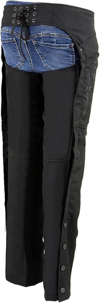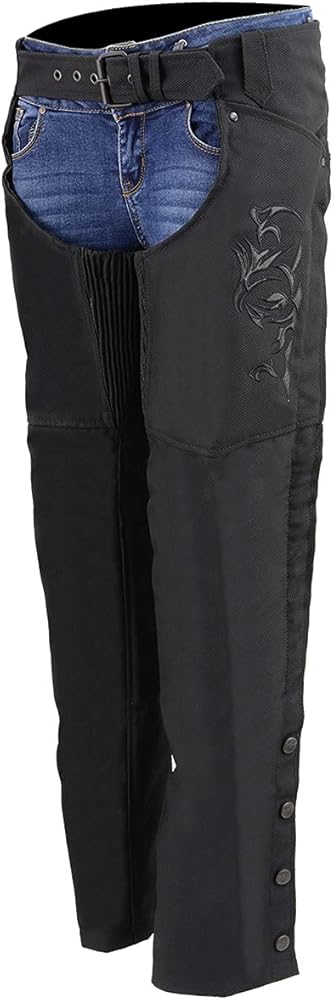 Milwaukee Leather SH1182 Women's Black Textile Motorcycle Riding Chaps with Tribal Embroidery