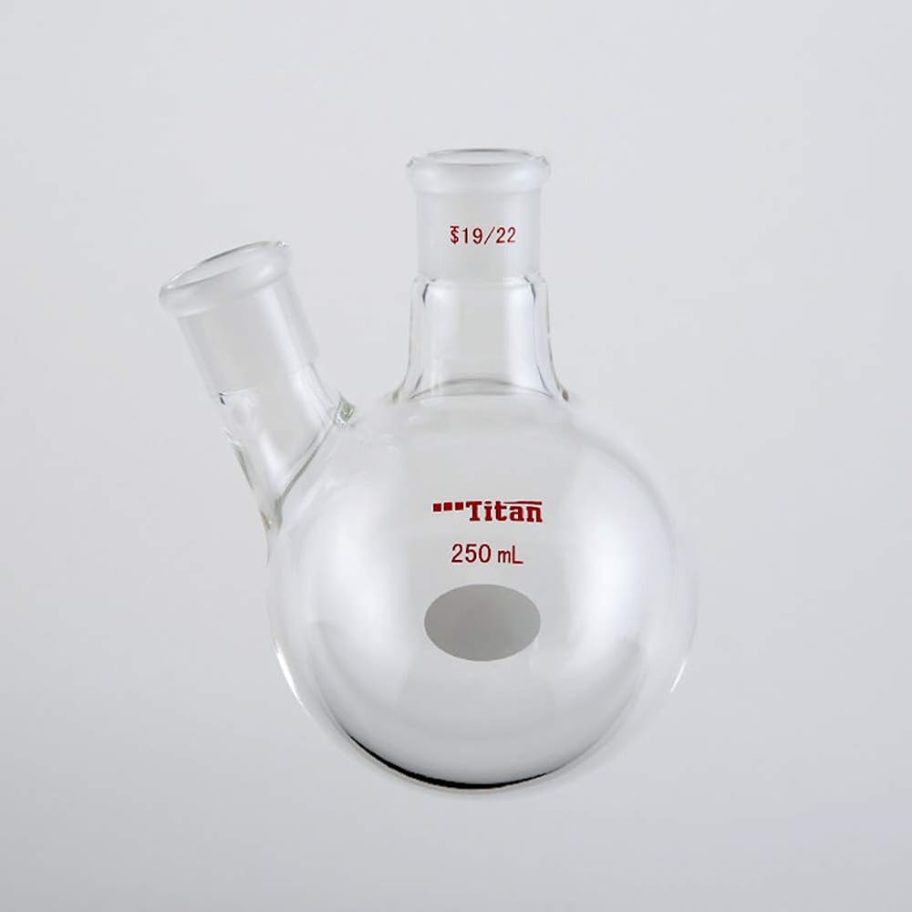 Glass 250ml Heavy Wall 2 Neck Round Bottom Flask, with 19/22 Center and Side Standard Taper Outer Joint - 250ml