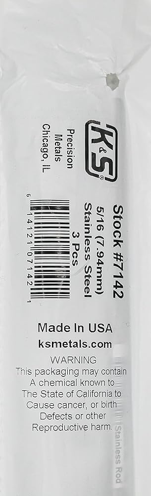 K&S Precision Metals 7142 قضيب دائري من الفولاذ المقاوم للصدأ: 5/16 بوصة OD × 36 بوصة طول، 3 قطع، صنع في الولايات المتحدة الأمريكية