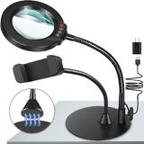 10X Magnifying Glass with Light and Stand, 5 Color Modes Stepless Dimmable LED Lighted Desk Lamp, Hands Free Magnifier with Flexible Goose-Neck for Craft Hobby Painting Sewing Close Work