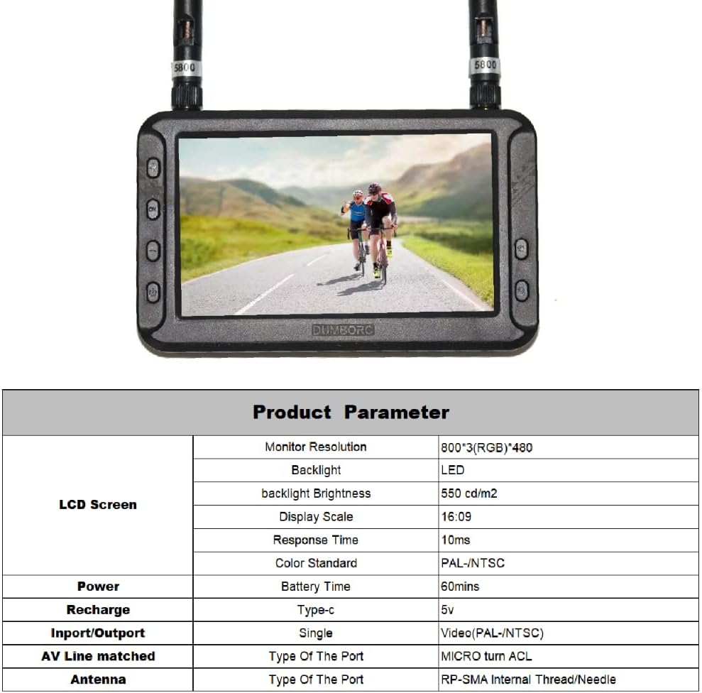 DUMBORC 4.3Inch FPV Display screen with Camera 800*3(RGB)*480 5.8G 40CH Wireless LCD Screen with Camera Monitor for RC Car RC Trucks /RC Crawler/Boats/Tank/Quadcopter