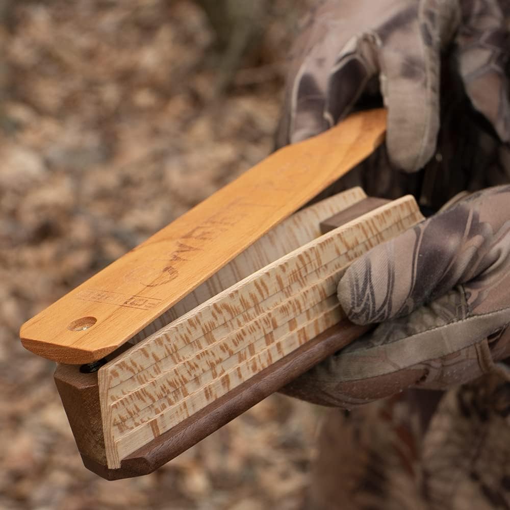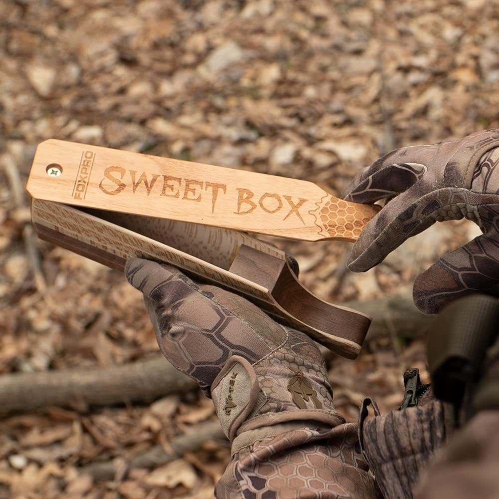 The FOXPRO Sweet Box call is a traditional style box call that offers incredible volume with high-quality sound. It's unique construction of a Honey Locust top, Speckled Sycamore sides, and Walnut solid bottom / handle truly set this call apart from the flock. The paddle features a laser engraved design. This traditional style call with a unique wood combination is sure to become a favorite amongst your call arsenal. The FOXPRO Sweet Box call is proudly made in the USA.