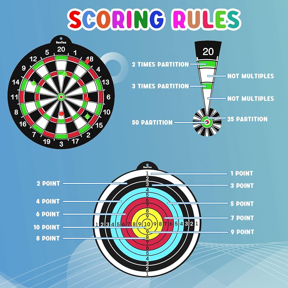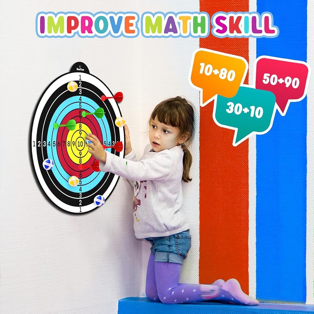 IMPROVE MATH SKILL & HAND-EYE COORDINATION & COLOR RECOGNITION & IMPROVE ATTENTION LEVELS --- As well as being fun, dart board games will improve attention levels, hand-eye coordination, and math skill. It's perfect in enhancing skills in color recognition. Utilizing it for math games with students, points system makes it challenging enough while interesting. Help you relax in a busy day, also a great social game for friends and family. Best funny toys for Kids, stress relief toys for workers.