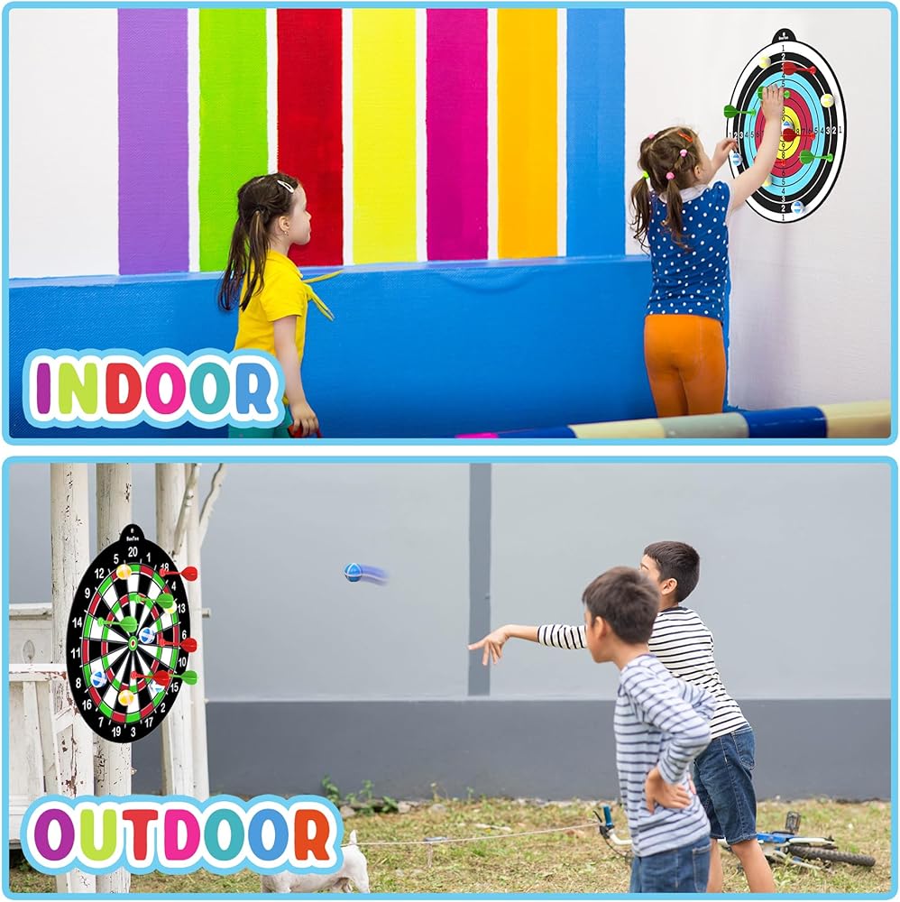GET YOUR KIDS AWAY FROM COUCH, TABLET SCREENS, BEST CHRISTMAS GIFT CHOICE --- Best gift choice for kids boys girls toddlers teens, also can be used as girl friend/ boy friend gifts. Use this dart board kit as prizes or good behavior rewards to your baby at home. Best toy gifts for 3 4 5 6 7 8 9 10 11 12 year old boys kids girls. Give them a try, your baby girls boys will be away from TV, mobile phone game, tablets screens, join this fun game for hours, best for their health.