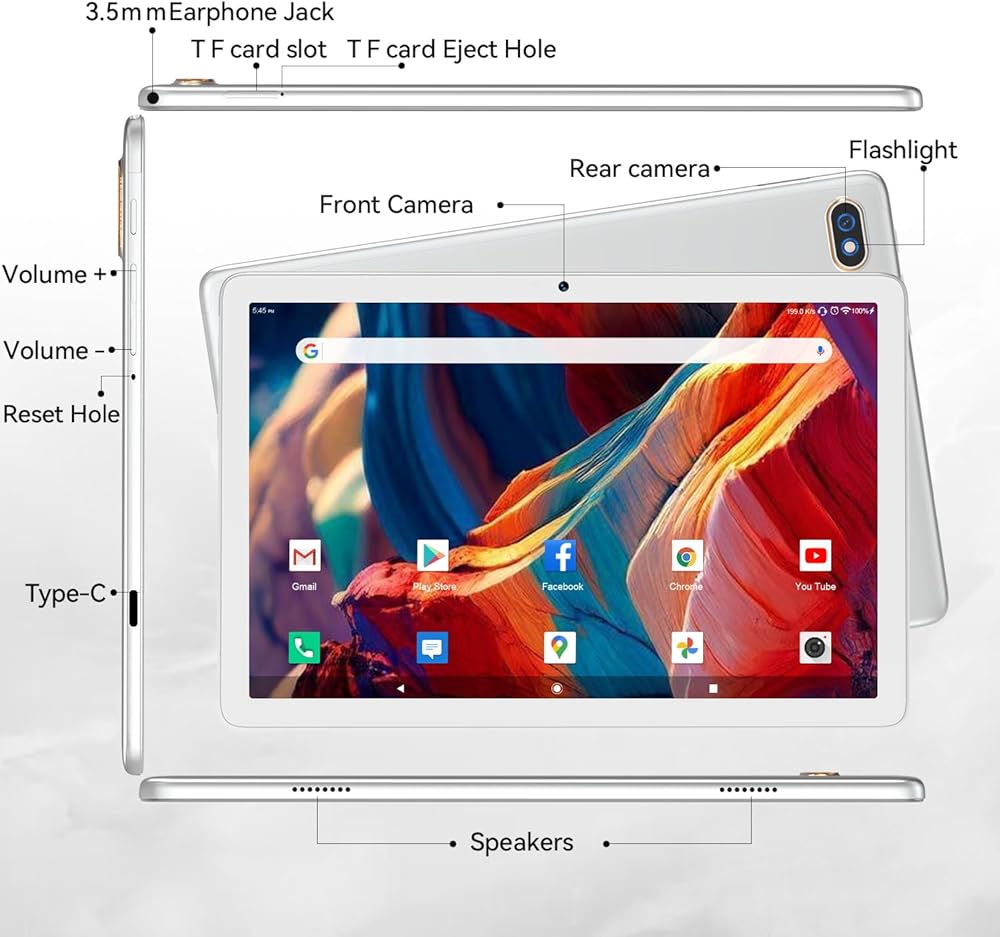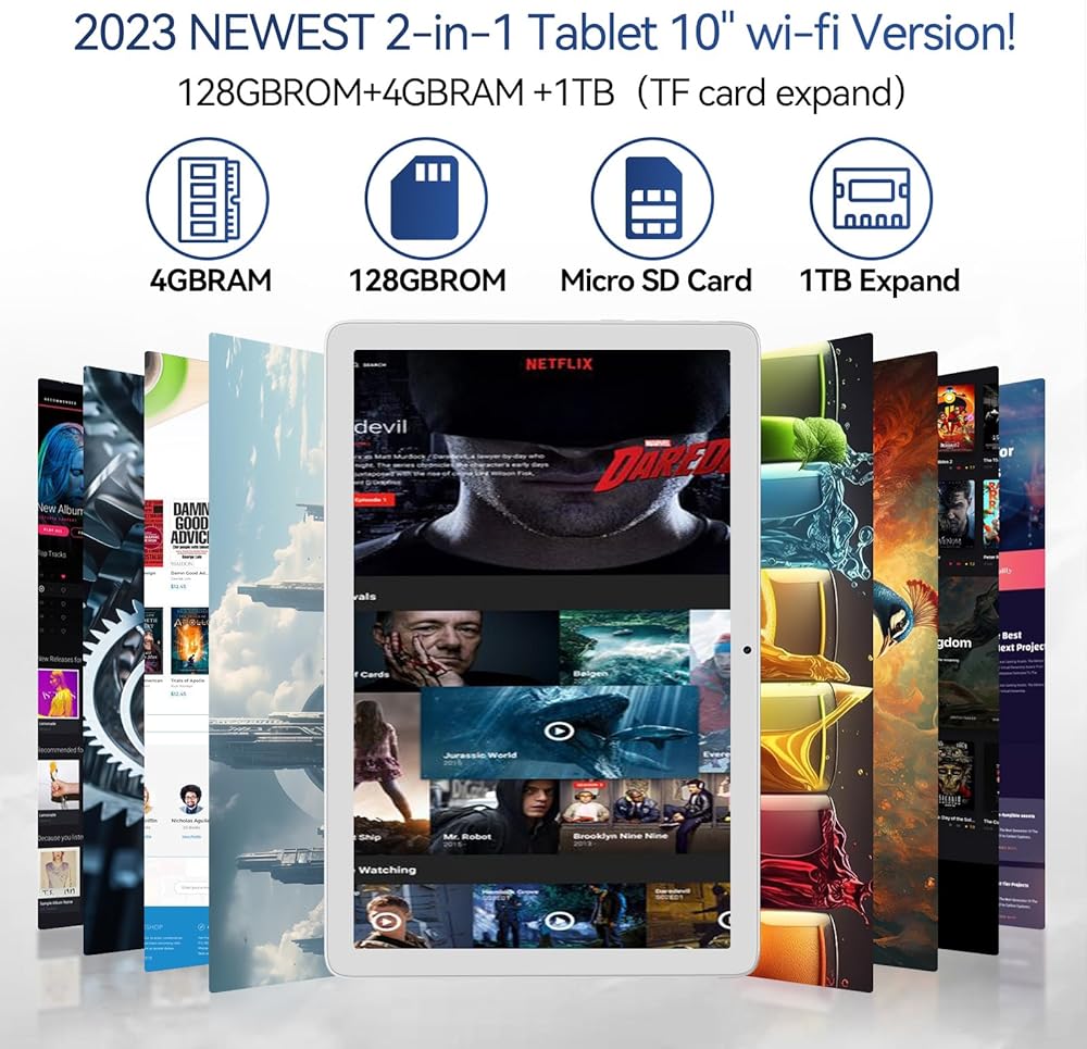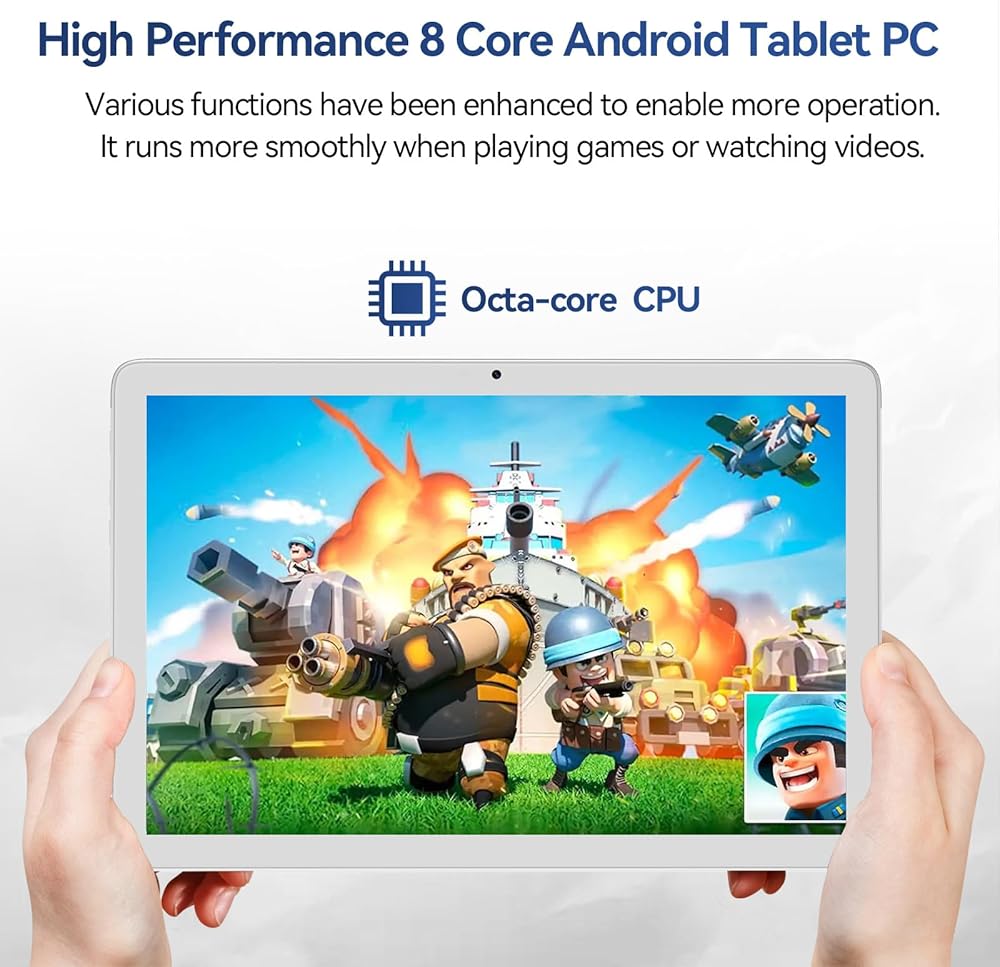 💻【Upgraded to 128GB Storage】This tablet comes with 4GB RAM plus 128GB internal storage, can expandable up to 512GB(max to 1TB) by external TF/SD card. Android tablet allows you to download android apps, songs, photos or movies, no worry to keep all data, files and games.
