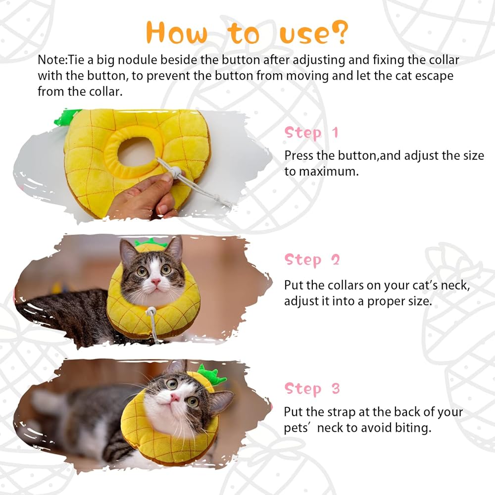 HYLYUN Cat Recovery Collar - Cute Pineapple Neck Cat Cones After Surgery, Adjustable Cat E Collar, Surgery Recovery Elizabethan Collars for Kitten and Cats