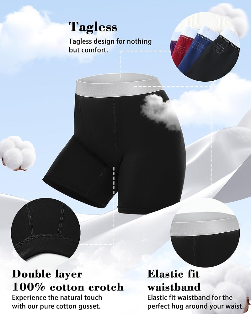 💖Say Goodbye to Irritation: Our womens cotton boyshorts underwear is crafted to prevent rolling up and discomfort, featuring a side-seamless design that eliminates thigh irritation, and keeping your focus on your day, not your discomfort whether you are exercising, sleeping, working, or doing daily activities.