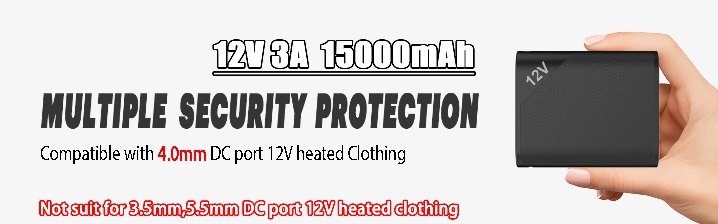 【12V 4.0mm DC Port Battery Pack Special for Heated Clothing】15000mAh large capacity, compatible with 12V 4.0mm DC port heated clothing (heated jackets, heating vests for men women) on the market, and suitable for charging smart phones.