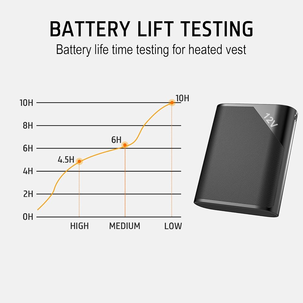 【15000mAh Large Capacity】With a higher conversion rate, it can continuously heat vests for 3-10 hours (3 hours high temperature, 6 hours medium hours, and 10 hours low temperature ).
