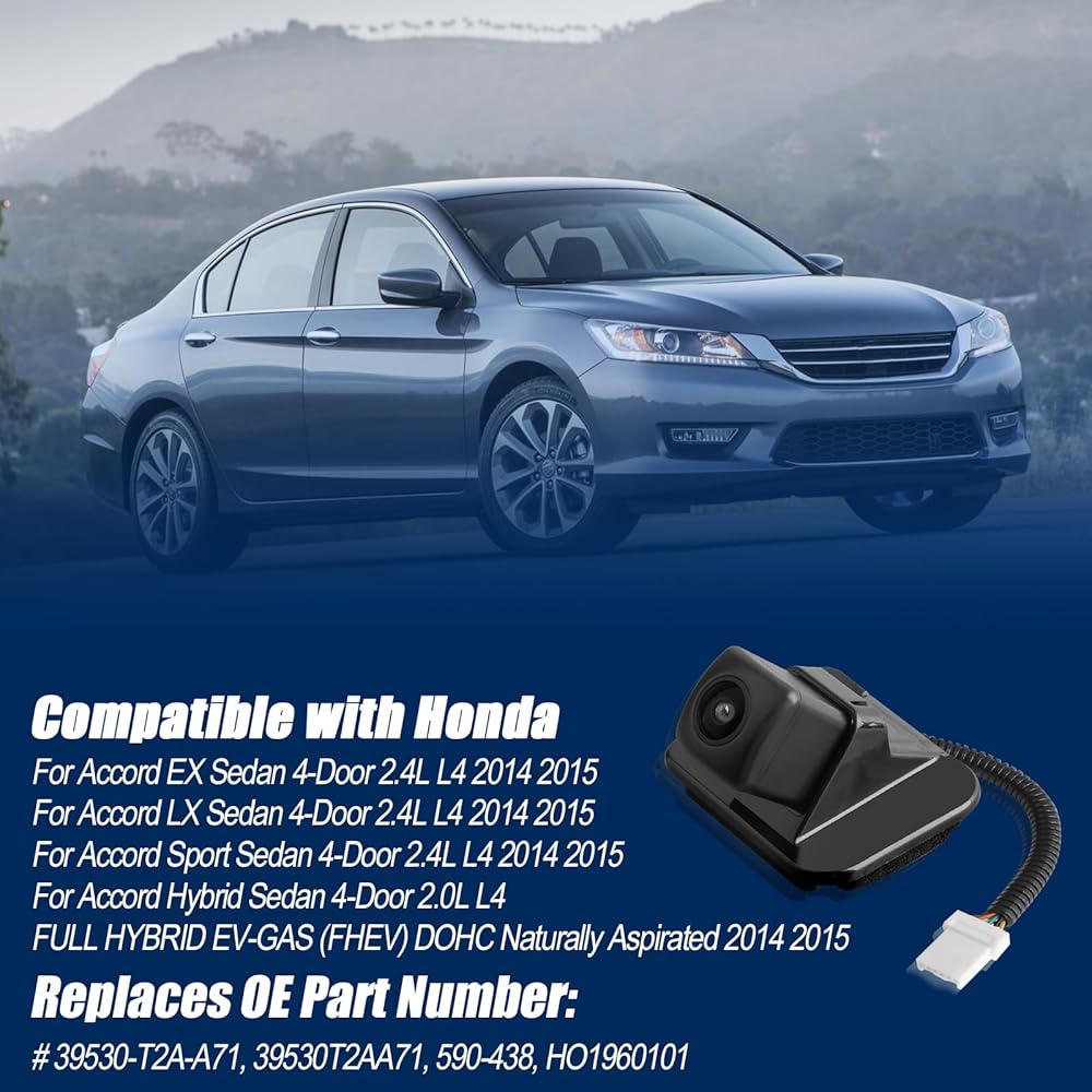 ✔【Plug and Play】Accord park assist camera Replace for part number 39530T2AA21,39530T2AA31,39530-T2A-A21,39530-T2A-A31,39530-T2A-U110-M2,590-440,Simply mount it on your car's rear bumper or license plate,connect it to the display,and you're ready to go!