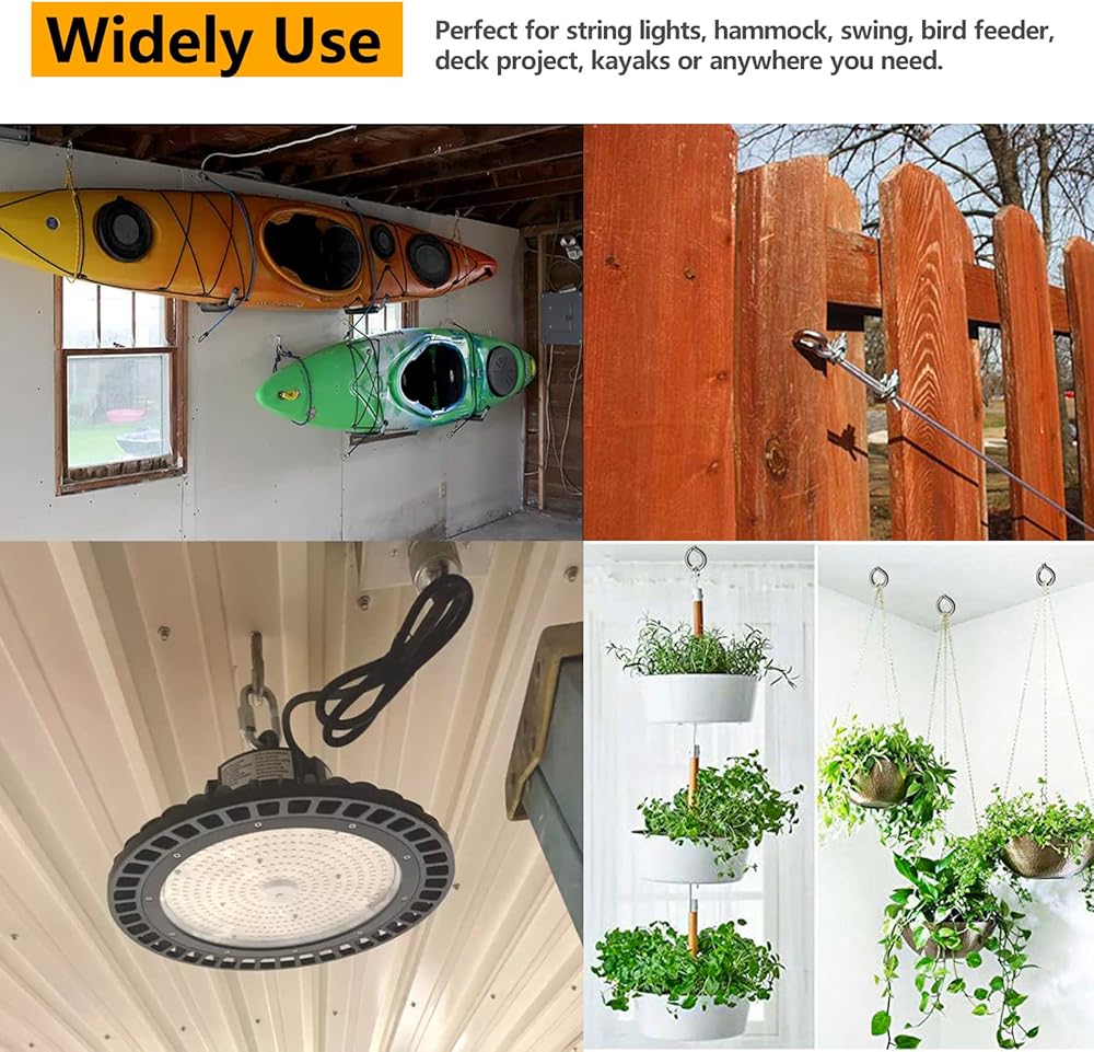 [متعدد التطبيقات]: للاستخدام الداخلي والخارجي. يمكنك استخدامها لتعليق أضواء الخيط، أو الأرجوحة، أو الأرجوحة، أو إطعام الطيور، أو مشروع سطح السفينة، أو قوارب الكاياك أو أي مكان تحتاجه