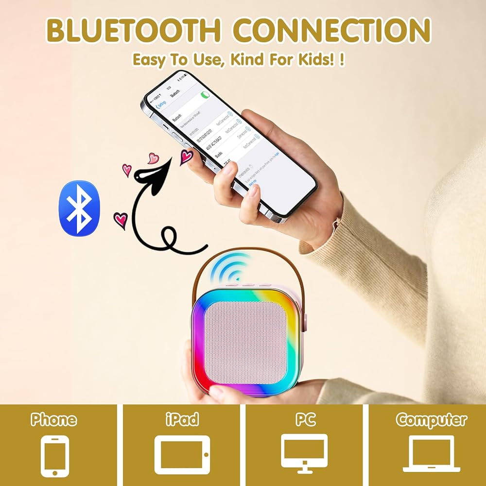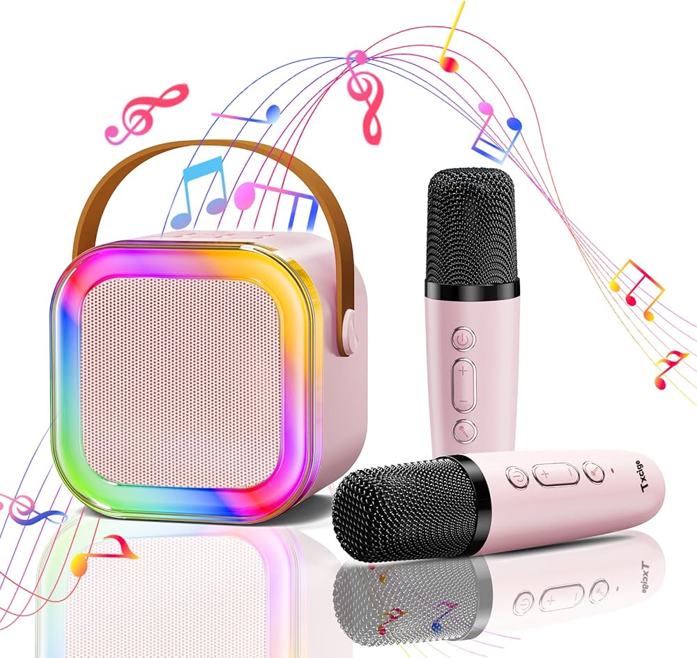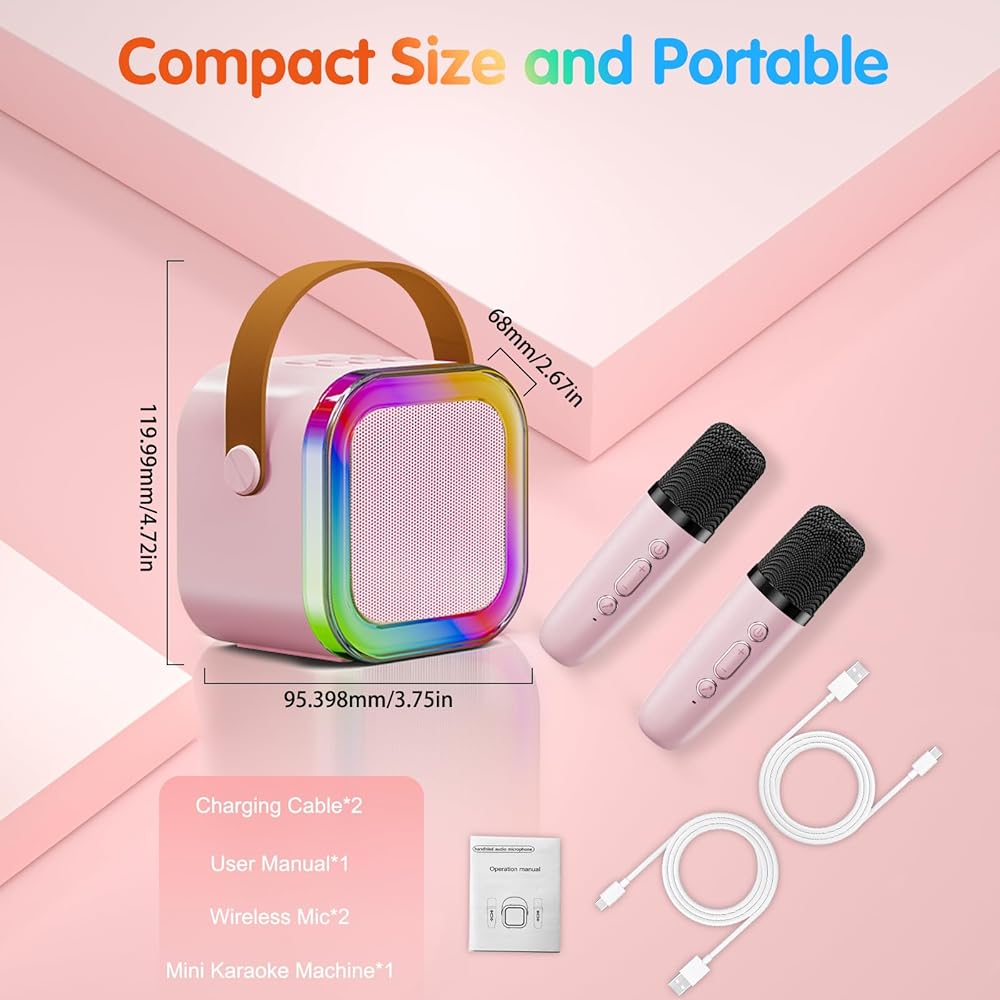 Txcige Mini Karaoke Machine for Kids Adults, Portable Bluetooth Karaoke Speaker with 2 Wireless Microphones & Colorful Lights, Karaoke Machine for Girls Boys Birthday Christmas (Pink)