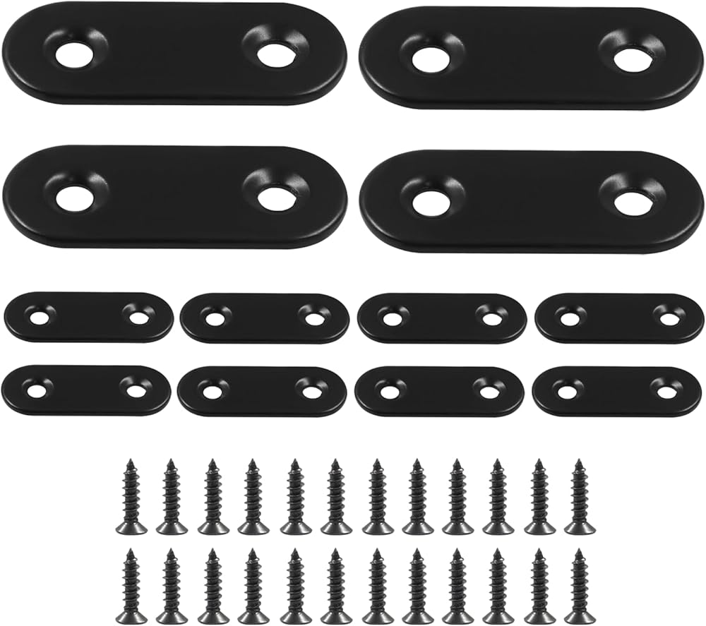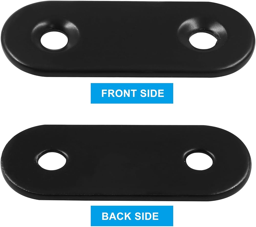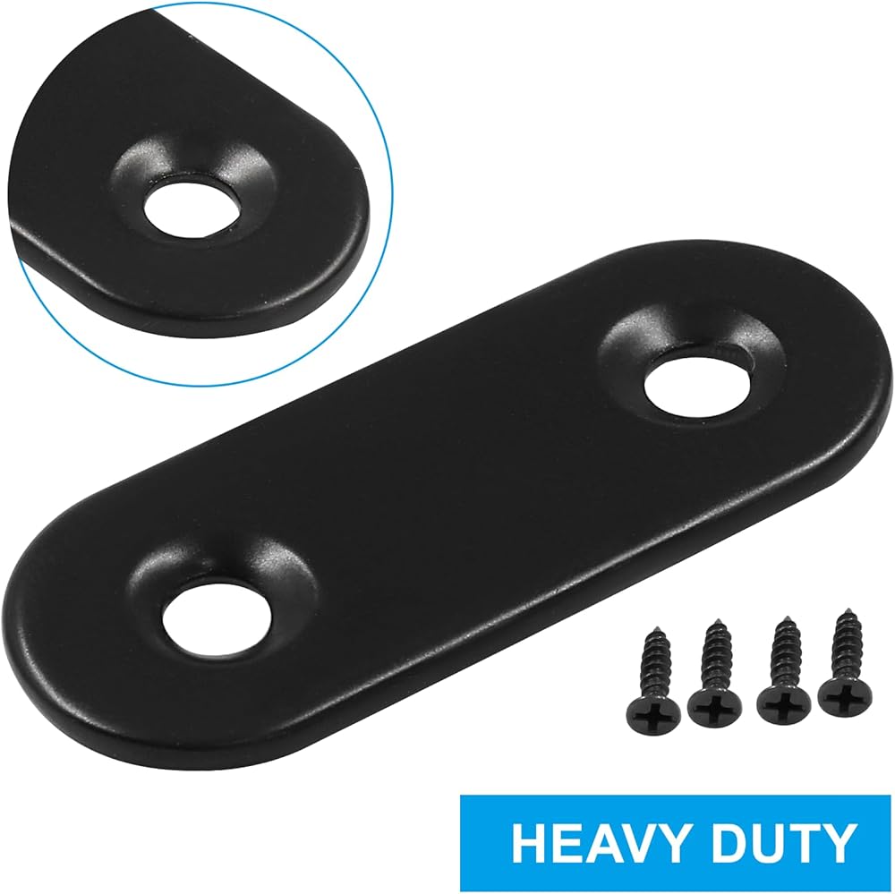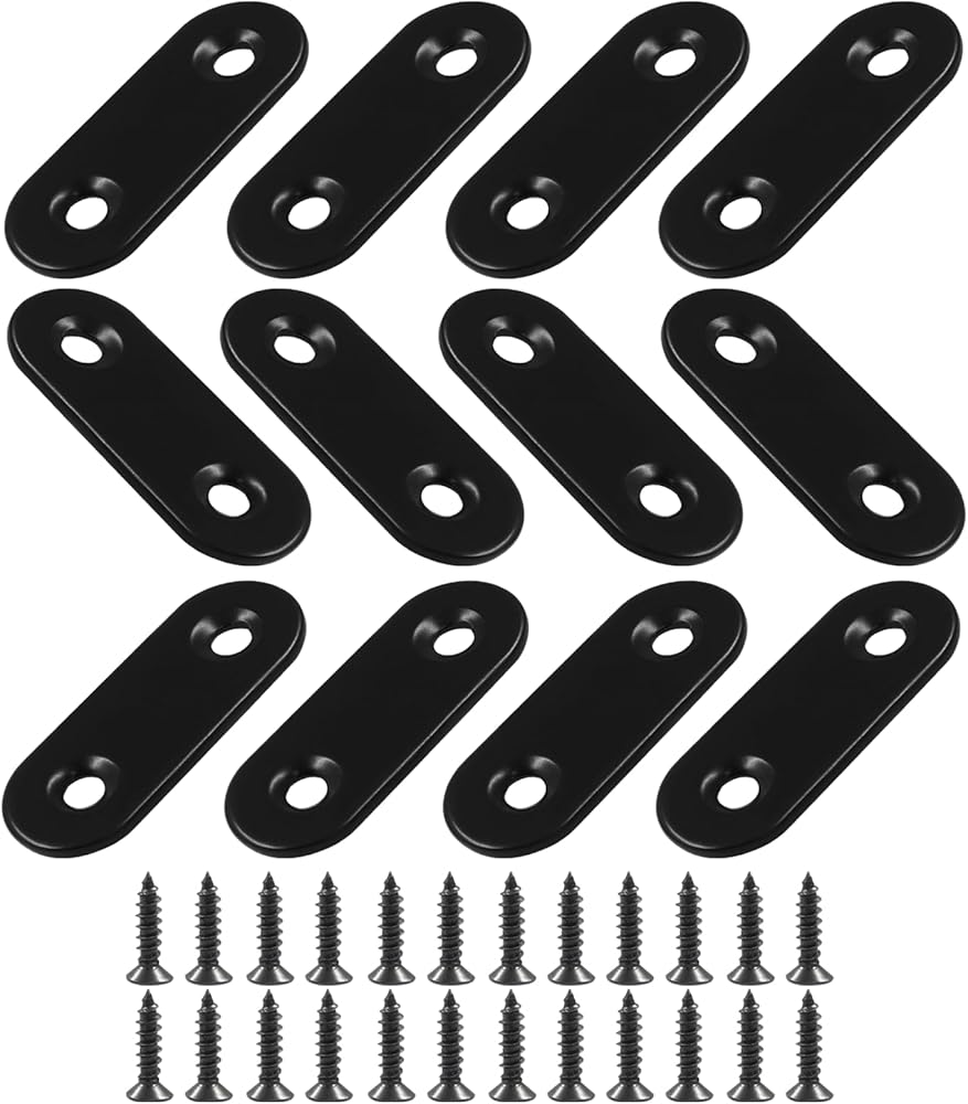Hordion 24Pcs 1.5 Inch Straight Bracket Stainless Steel Brace, Flat Mending Joining Plate Fixing Bracket Connector with Screw for Cabinet Furniture, Black
