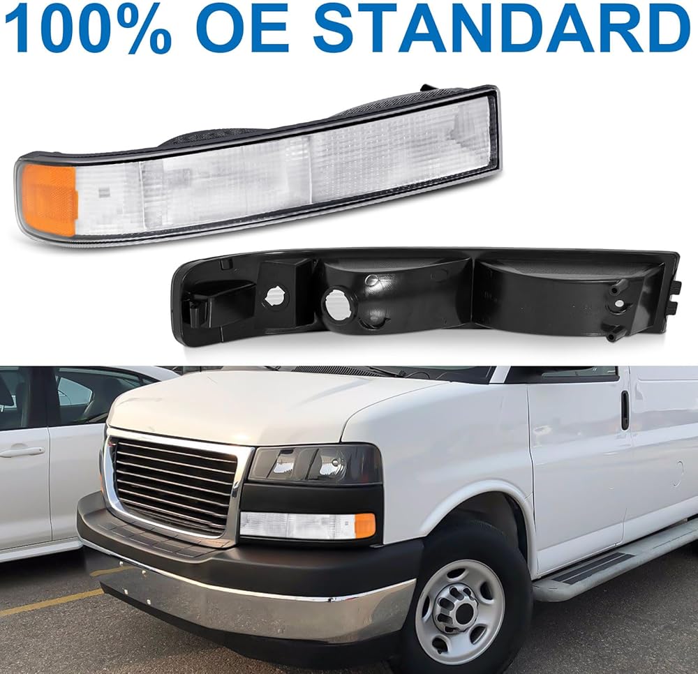 Pair of OE Style Front Bumper Parking/Turn Signal Lights Compatible with 2003-2022 Chevy Express|GMC Savana 1500 2500 3500 Driver Side and Passenger Side