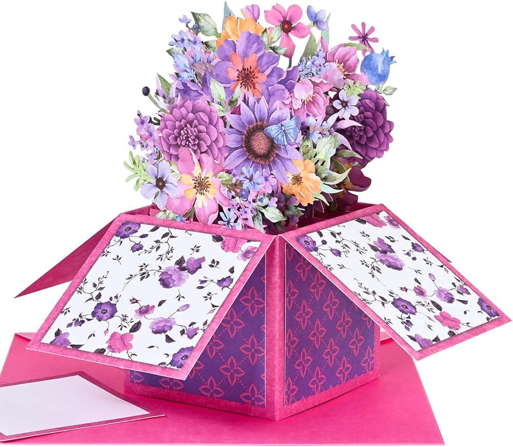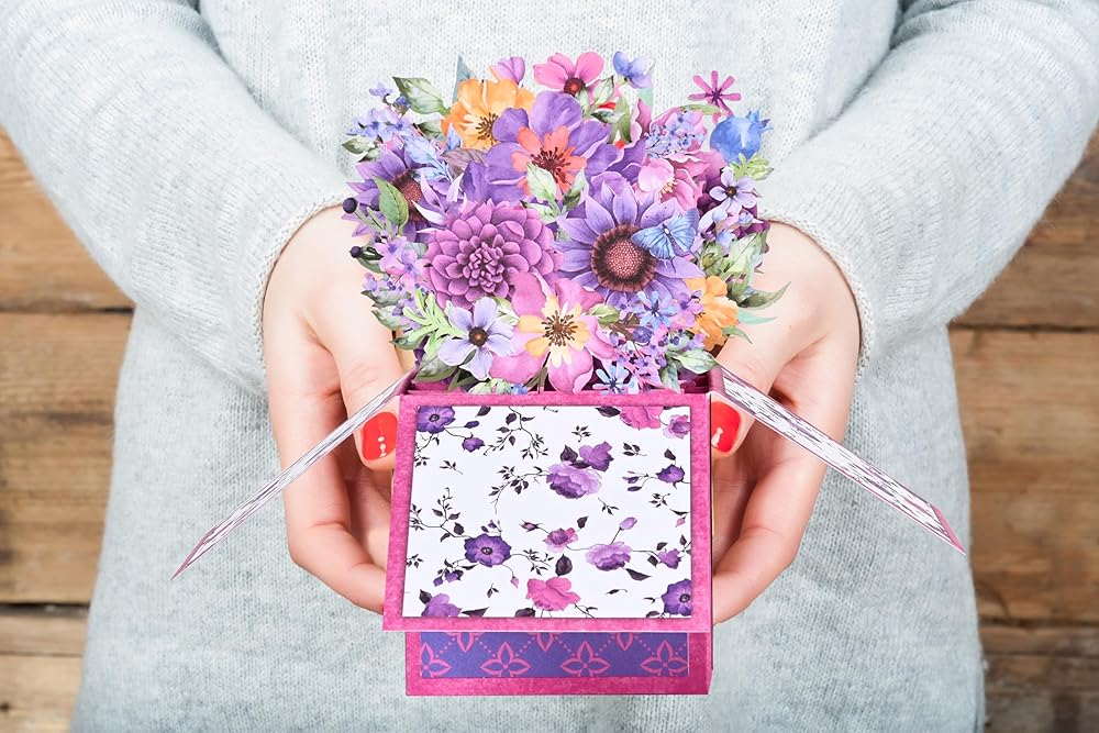Color3D Pop Up Purple Floral Bouquet Box Greeting Card
