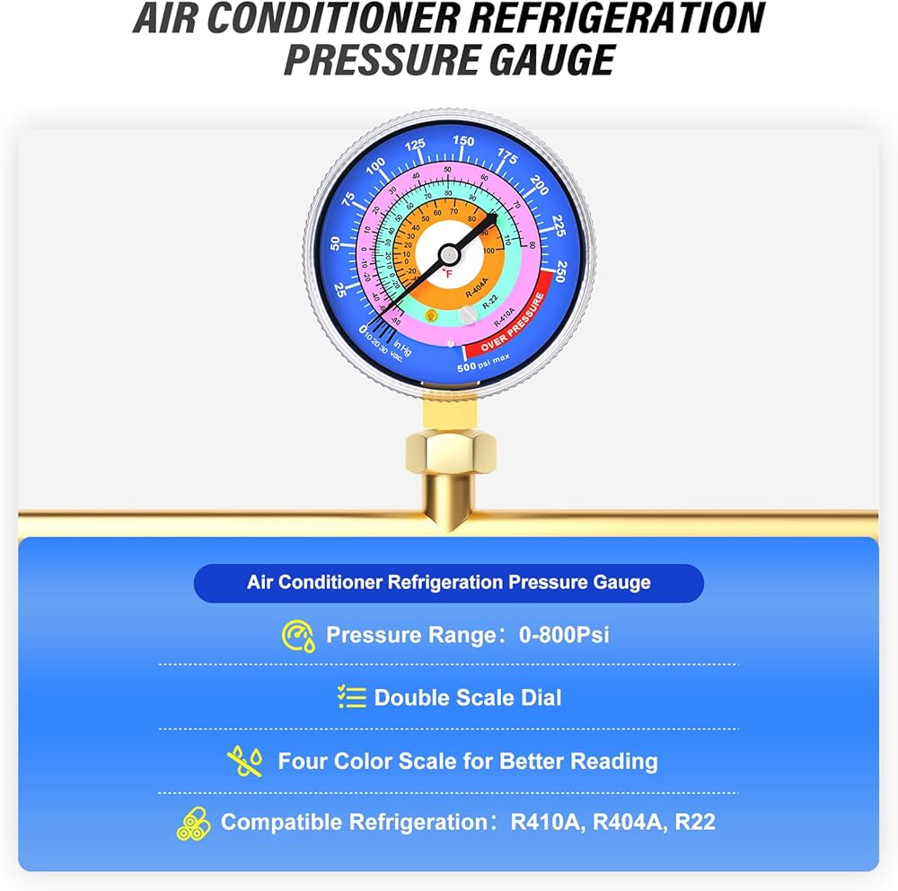 【Maximum Range】30 in HG to 250Psi,Compatible with R410A, R404A, R22
