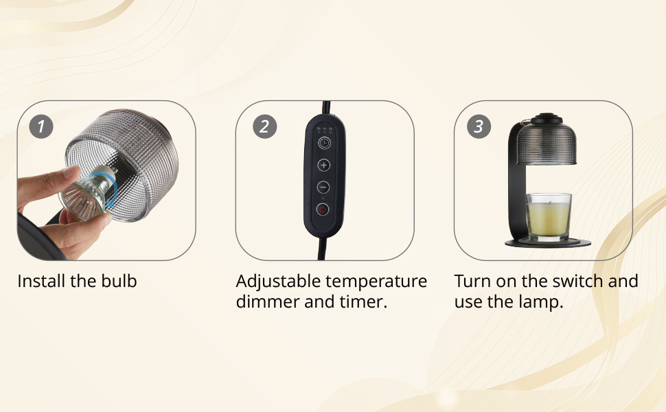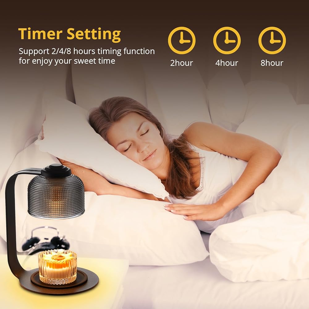 【Timer & Dimmer】: The electric candle warmer utilizes top-down heat melting technology to provide a consistent strong and clean scent. With dimmer control of the aesthetic home decor lamp candle warmer, you can adjust the melting speed. The brighter the setting, the faster it melts. Also, you can set the 2/4/8 hours shut-off function on this candle warmer lamp with timer,don't need to worry about forgetting the heating time.