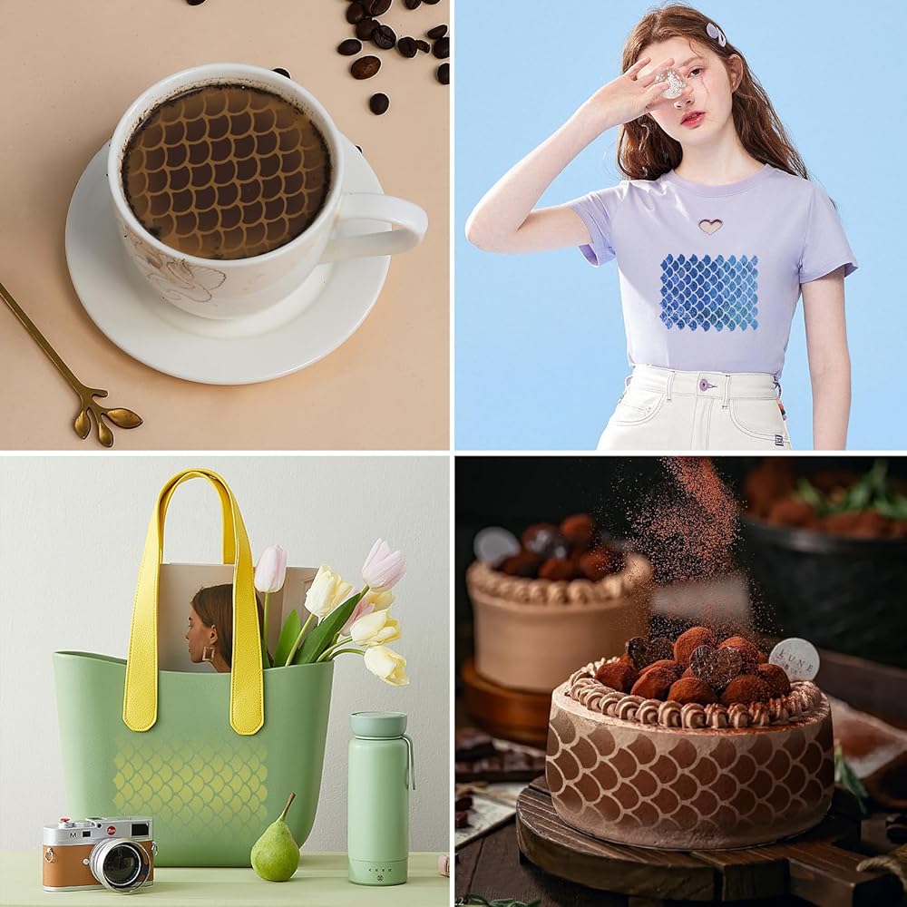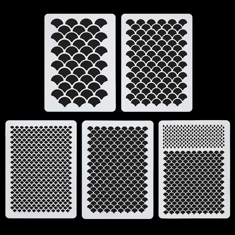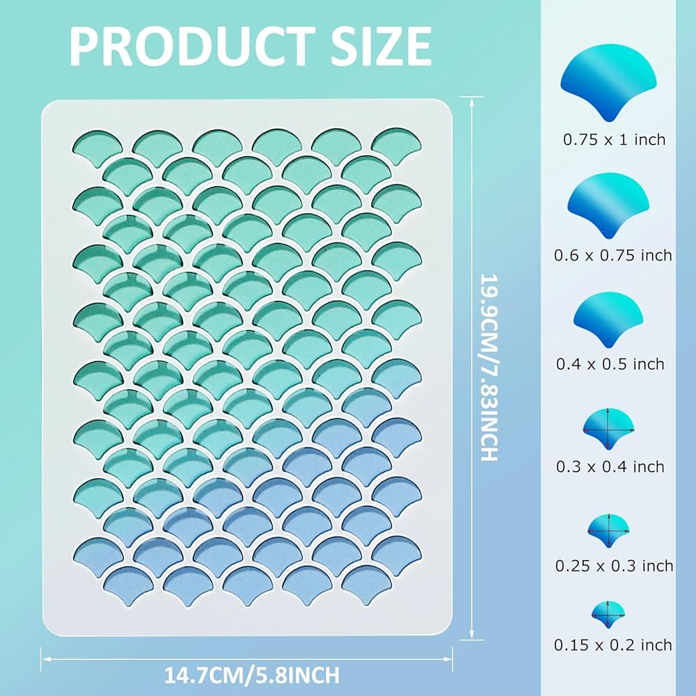 [Premium Material]--Our Reusable Fish Scale Template for painting makeup are made of PET material and adopting laser cuts that will ensure edges more smooth, Lightweight, sturdy and reliable, not easy to break or deform, comfortable and soft, smooth on surfaces, reusable and waterproof, easy to clean, they can be reused.