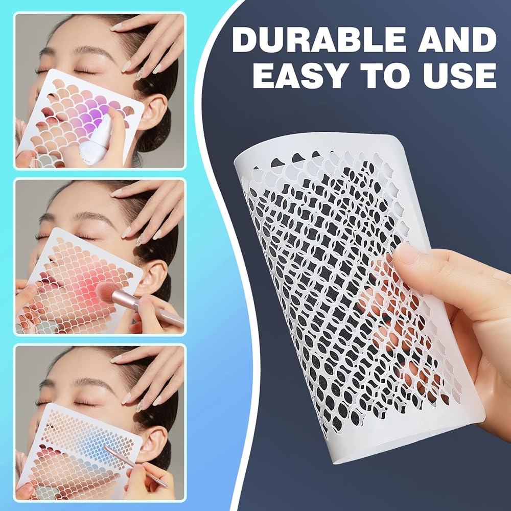 [Easy to Use]--These mermaid scale stencil are easy to use, no Skill required and save time. Just press the fish scale template onto your face or fix it in other places where you need to paint. Then choose the color you like and use a makeup brush or spray pen dip some rouge or eye shadow plate or pigments. Finally, gently brush it onto the scale Stencil. If it is oily or wet spray painting, please ensure that the paint is completely dry, and lift the stencil from your face or other painting place carefully. For airbrush, spray it from at least two inches away in low pressure at a 90 degree angle from the stencil to avoid paint going under the stencil.