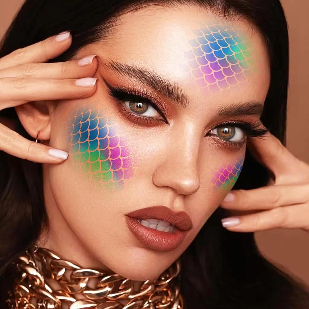 [What you will get?]--You will get 5 pieces fish face paint stencils, each item with a different fish scale size option. They can makeup into mermaid scales of different sizes. The smallest fish scales hole can be as small as about 0.2 inches, which can better fit the small makeup areas of your face or eyes.