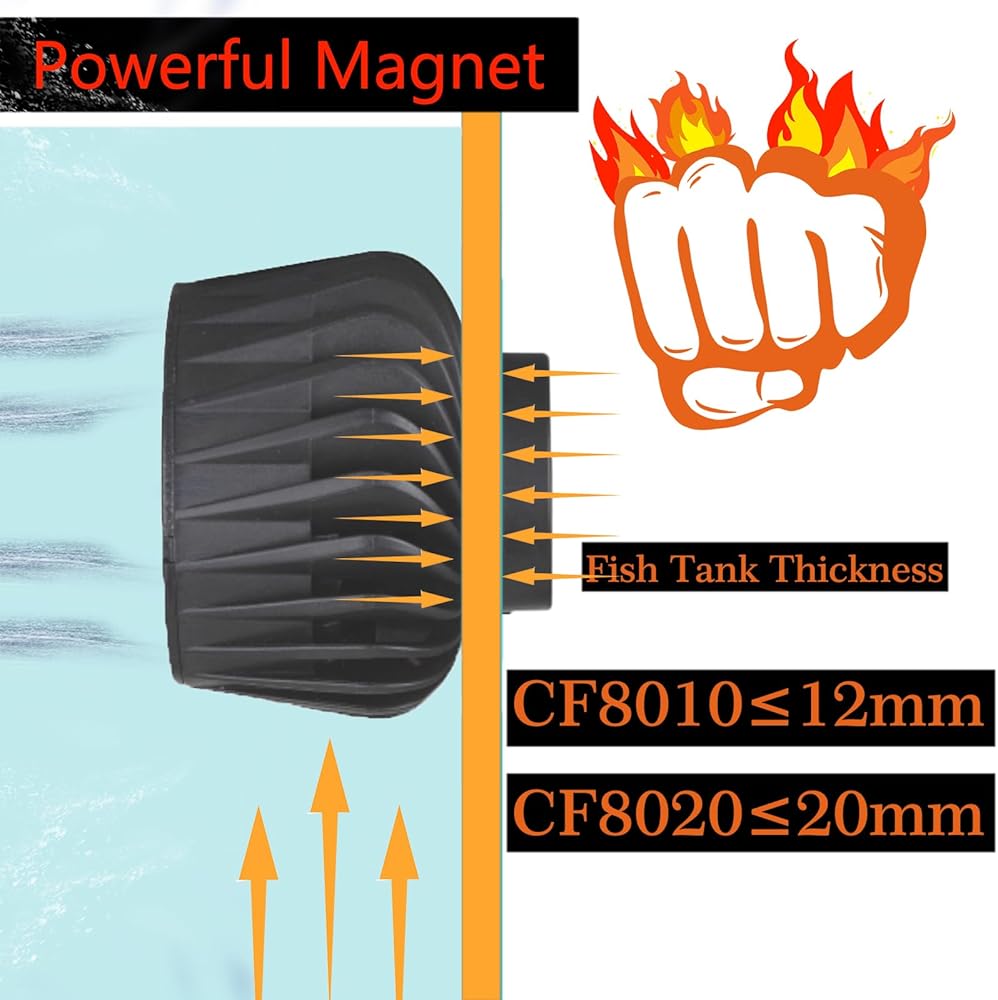 【Super strong magnetic force】Can be used for 15cm/6Inch thickness fish tank wall.When installing the wave maker, turn off the power and install it underwater.