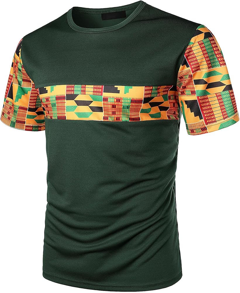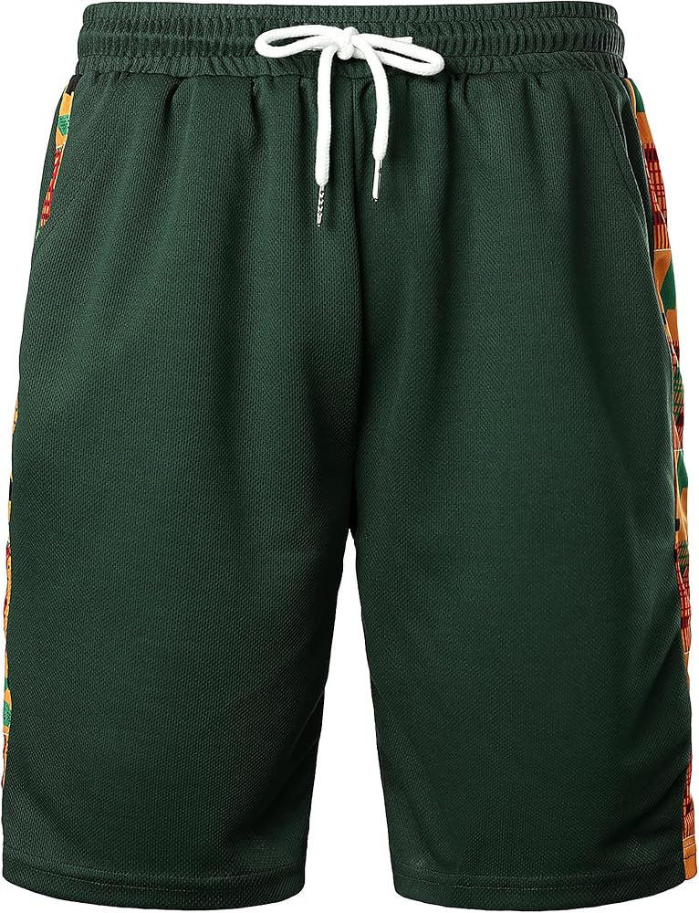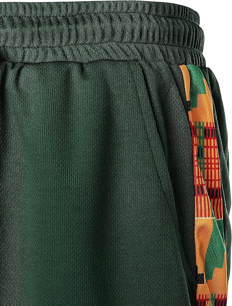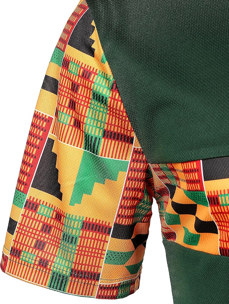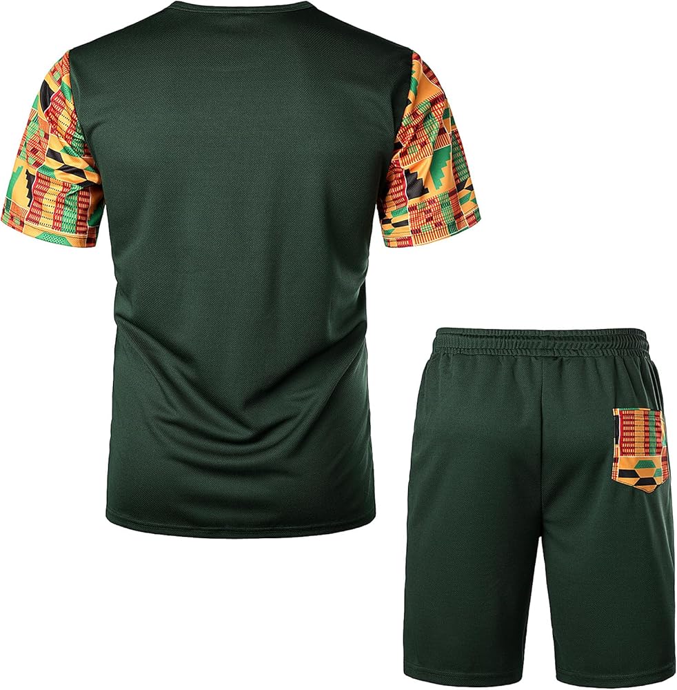 STYLE: Spring Summer Sportwear / 2 Pieces /Short Sleeve / Slim Fit/ 2 Side Slant Pockets /1 Back Pocket / /Elastic Waist with Adjustable Drawstring ;Traditional Africa Kente Cloth Pattern Printed Patchwork Design