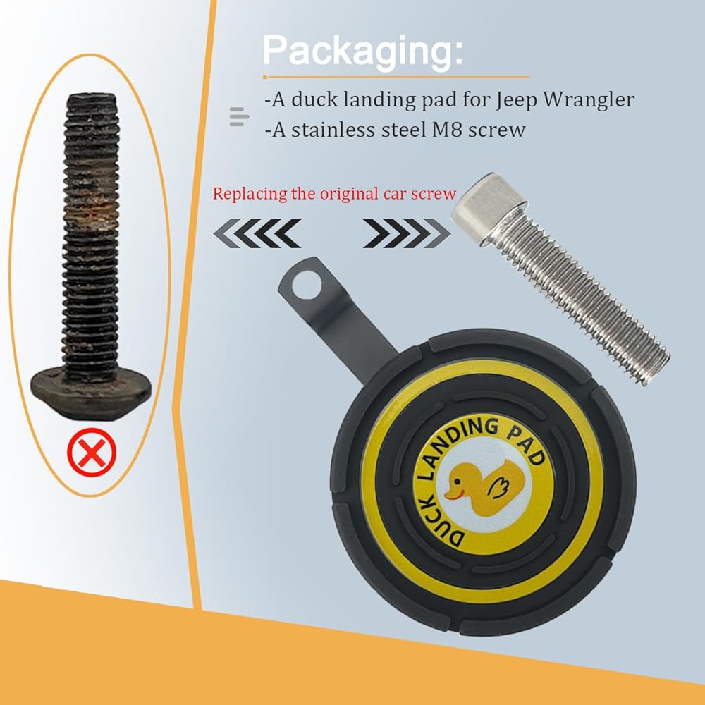 🦆Packaging: The package includes a duck landing pad for Jeep Wrangler and a stainless steel M8 screw(replacing the original car screw).