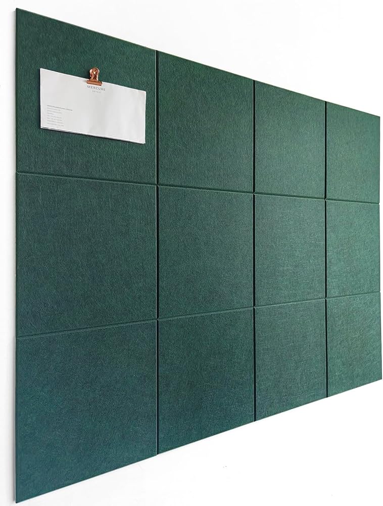 Green Bulletin Board | Large Cork Boards Alternative for Walls | Felt Cork Board for Office, Home & Classroom | Green Office Classroom Supplies | Felt Wall Tiles (12-Pack) | Aurora Green