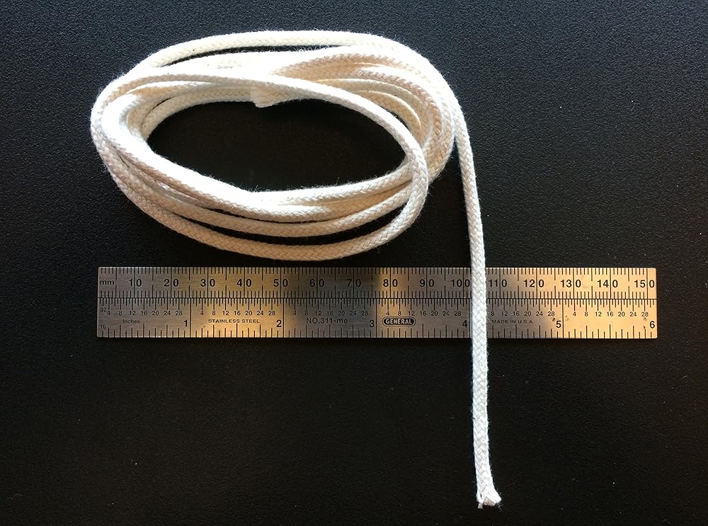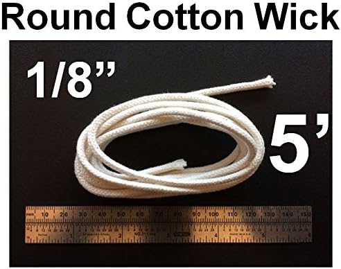 You Get: 1/8" Inch By 5' Foot Long Wick. Metric Conversion 3.2MM Diameter Round Cotton Wick.