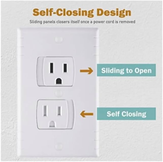 Dear Parents and Caregivers, We're committed to providing top-quality safety solutions for everyone. That's why we've meticulously crafted and expertly engineered our products to ensure the utmost protection for your little ones. Allow us to introduce our self-closing outlet covers, designed to offer dependable safety for all your baby-proofing needs. Featuring automatic sliding covers. These covers securely hold electrical cords in place, giving you peace of mind. Tailored to fit various outlet styles, they ensure both functionality and safety. With dimensions of 3" X 4 3/4", they're precisely crafted to conceal flaws and maintain your home's aesthetic appeal. Bid farewell to traditional outlet caps! Our innovative design eliminates the hassle of removal and replacement, providing a safer alternative to prevent choking hazards. Crafted with superior materials and a stylish design, our covers not only enhance safety but also preserve the aesthetic integrity of your home. Installation is a breeze – simply replace your existing wall plate with our self-closing version using just a screwdriver and a few minutes of your time. Rest assured, our covers offer peace of mind without the need for advanced technical skills.