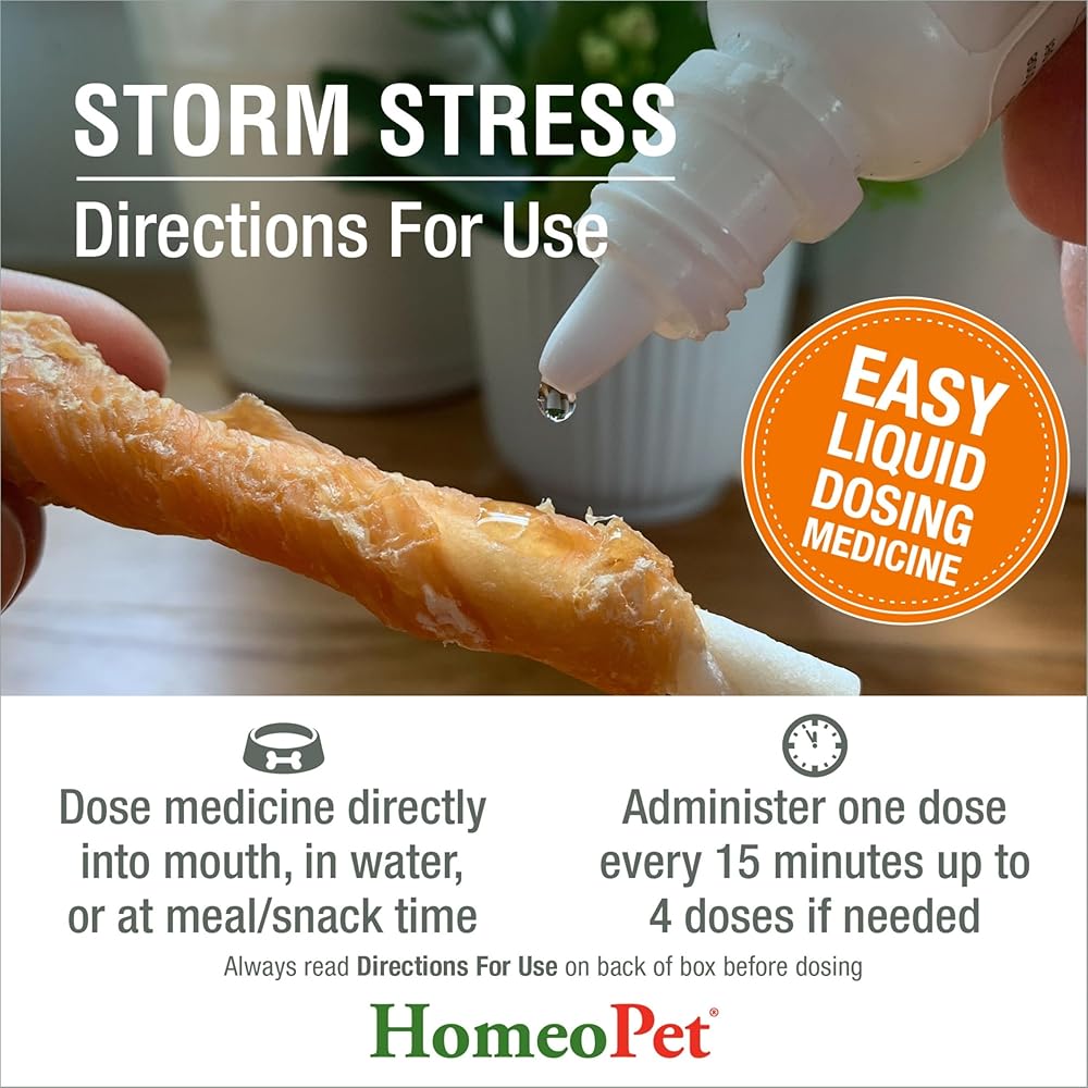 • STRESS RELIEF FOR DOGS & CATS: HomeoPet Storm Stress medicine can promote relief from fear and anxiety related to thunder, rainstorms, howling winds, severe weather, or other loud-noise events; It is a natural aid for anxious pets.