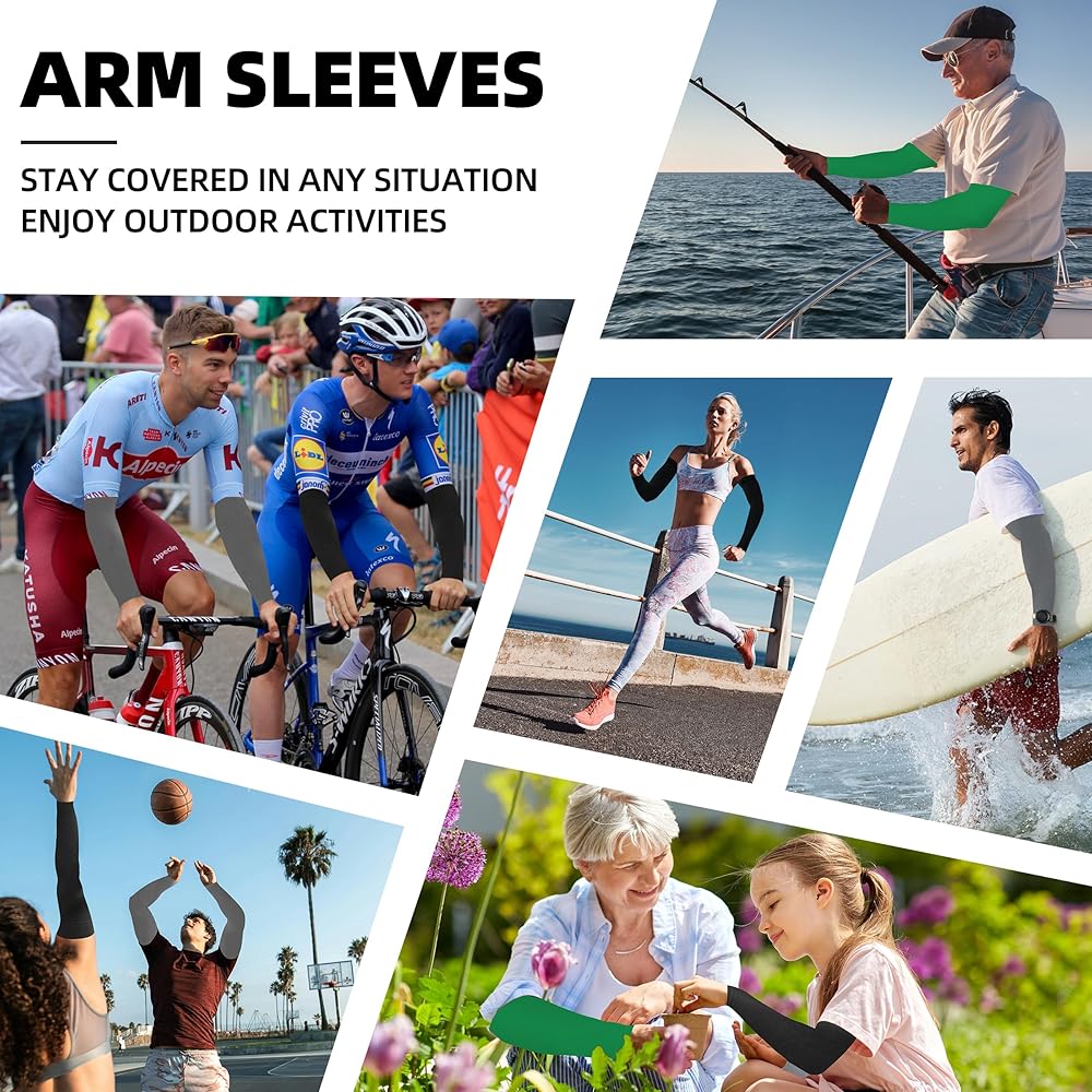 【Warm In Winter and Cool In Summer】The more you sweat, the cooler your skin becomes. Yes, wearing sun sleeves in summer can instantly cool your skin by 2-3°C. After sweating, the uv sleeves for men will quickly absorb the sweat and evaporate it, keeping you dry. In winter, sleeves are another tool for keeping warm. The graded compression sleeve allow your muscles to be fully wrapped comfortably and snugly, and promote blood circulation. Compression sleeve is like our second skin, protecting us.