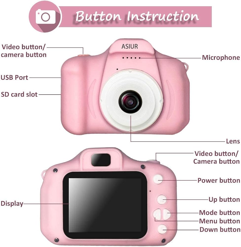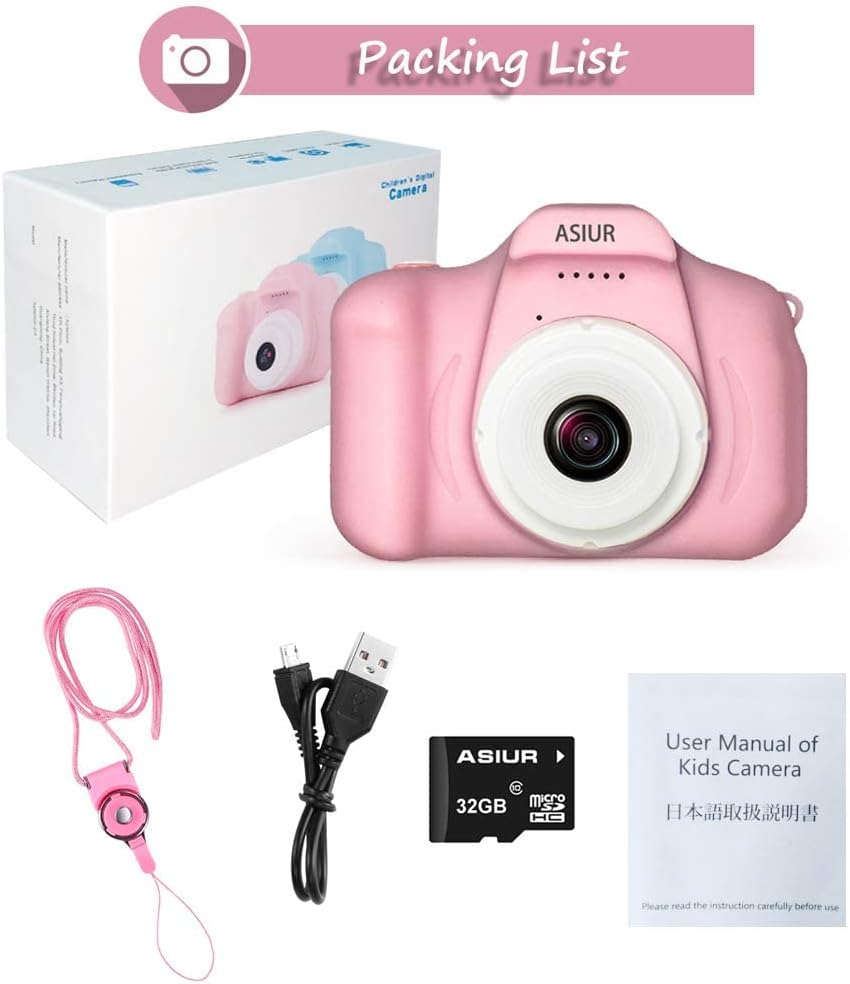 لعبة كاميرا للأطفال من ASIUR، هدايا عيد الميلاد للفتيات من سن 3 إلى 10 سنوات، كاميرات فيديو عالية الدقة 1080 بكسل للأطفال الصغار، ألعاب للفتيات بعمر 3 4 5 6 7 8 9 10 سنوات مع بطاقة SD سعة 32 جيجابايت - وردي فاتح