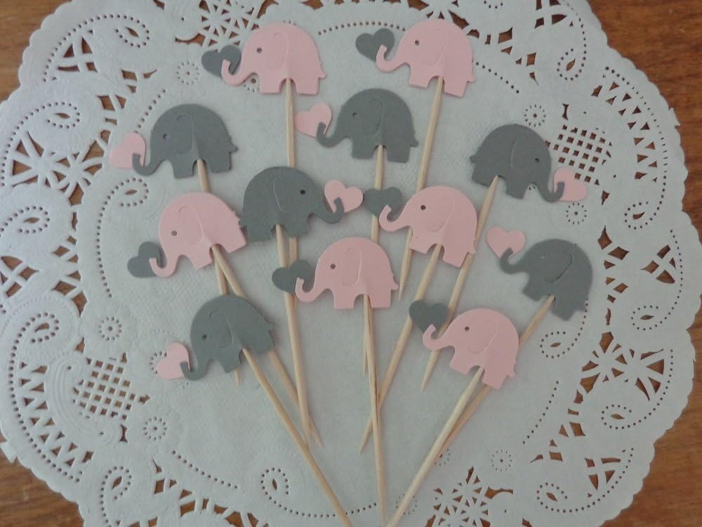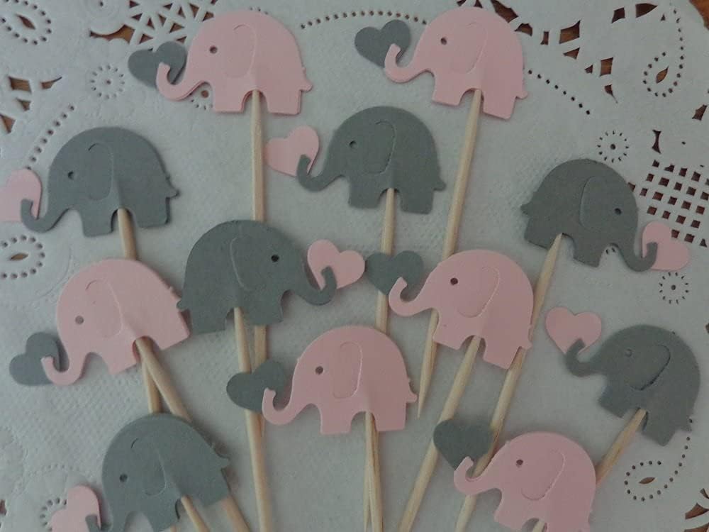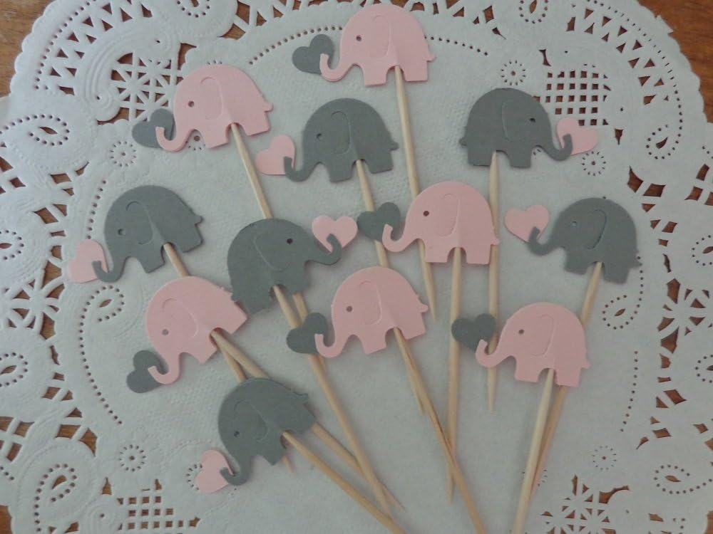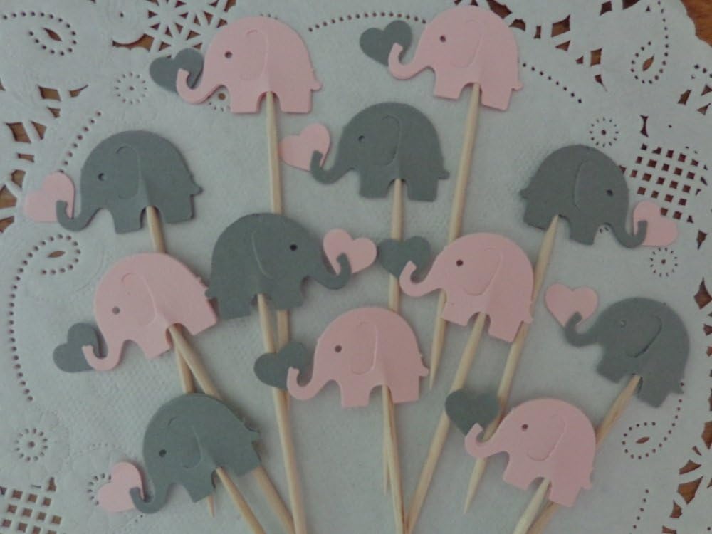 24 Elephant Cupcake toppers / food picks Perfect for your baby shower! Amount: 24 picks. Size: approx. 3" tall and Elephants are 1". Each is Double Sided for maximum cuteness Colors may vary slightly on computer screen. The key to a great party is in the details! These cute cupcake toppers / food picks are the perfect addition to your food display. They can be used in a variety of desserts! They work well with many different foods too, sandwiches, deviled eggs, cheeses and more. Simply insert them into foods and add that special something to your special event! Want to see more variety? Check out Honeybear Party Boutique for hundreds of choices!