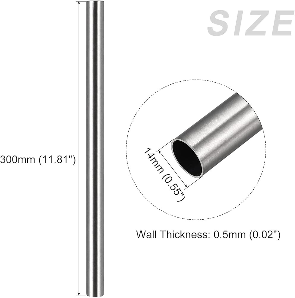 METALLIXITY 304 Stainless Steel Tube (14mm OD x 0.5mm T x 300mm L), Straight Tubing - for Home Furnishing, Machinery