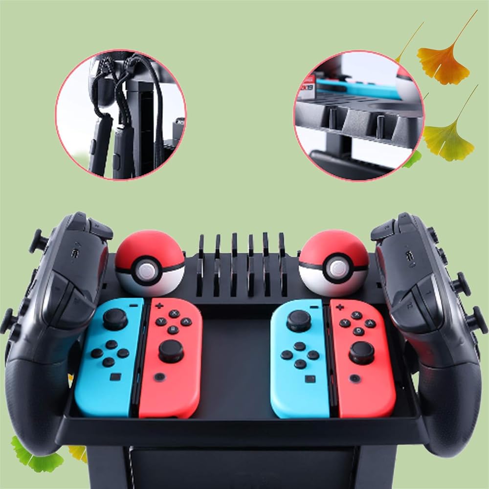 🌲Switch accessories organizer stand, can hold for Nintendo Switch dock, Joy-Con grip, 2 Pro Controllers, 2 Joy-Con strap accessories, 4 Joy-Cons, 12 Game cards and 2 Poke Ball Plus(Note: accessories not include).
