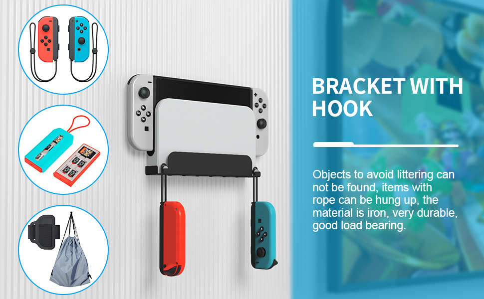 Keep Organizer:Hanging the switch oled console on the wall will make your desktop simple and clean,saving space!