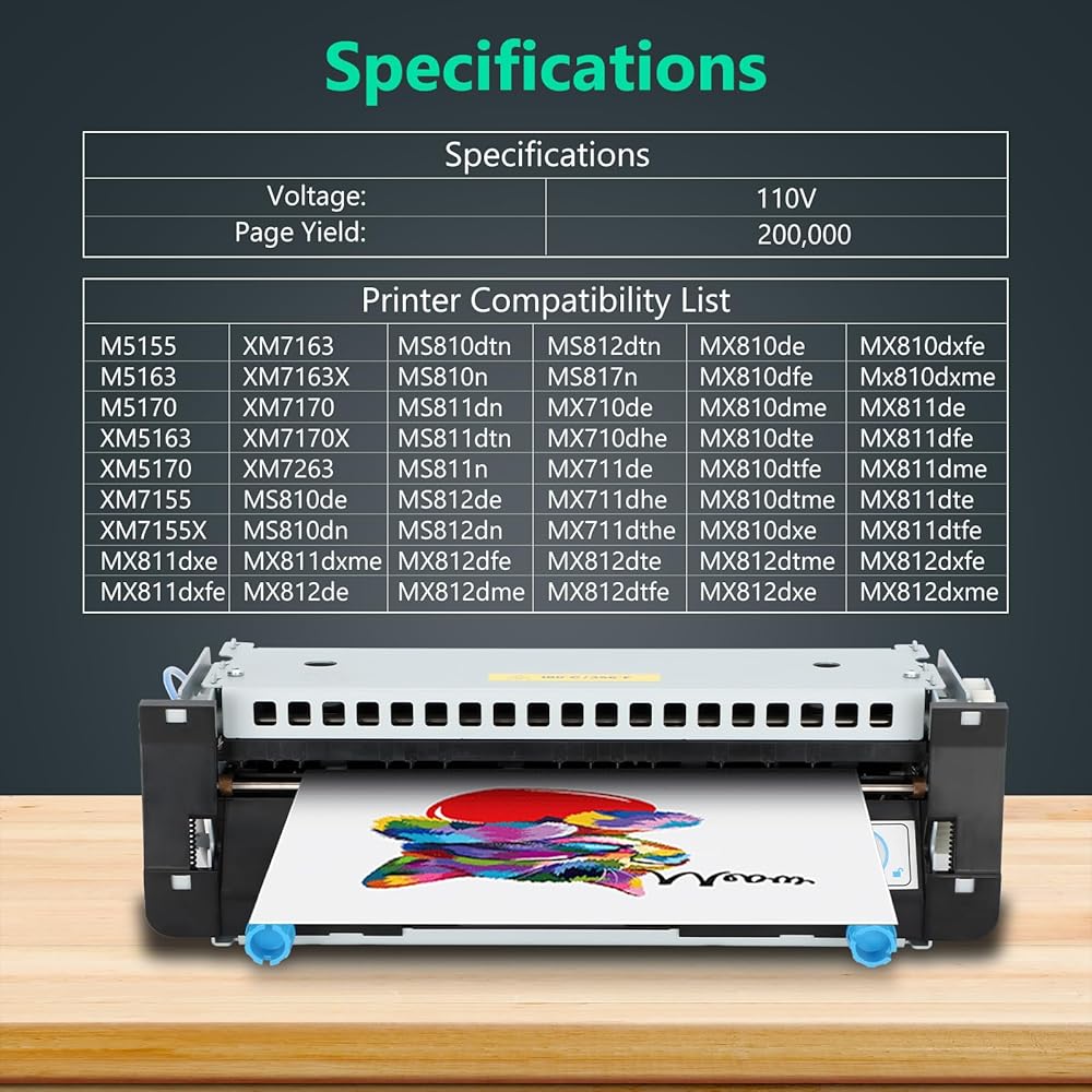 • 【Compatible Printer Models】40X8420 fuser unit is compatible with Lexmark M5155/ M5163/ M5170/ MS810/ MS811/ MS812/ MX710/ MX711/ MX810/ MX811/ MX812/ XM5163/ XM5170/ XM7155/ XM7163/ XM7170 Laser Printers. Dell B5460/B5465/S5830.