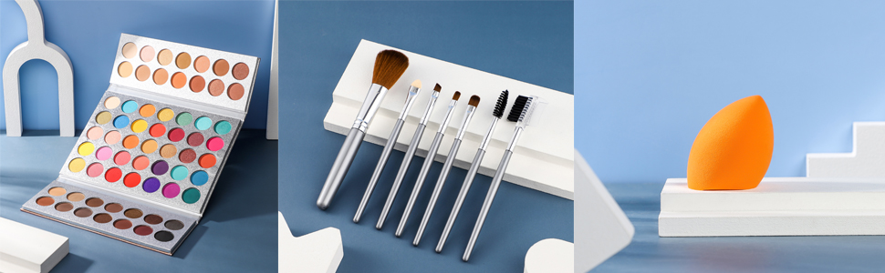✦ Good gift idea come with brushes and blender: You get a makeup palette, 7pcs makeup brushes set plus an orange egg shade squeeze/sponge.
