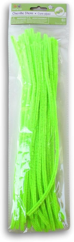 Great for craft projects, this 40-piece Colorful Craft Sticks Set features flexible metal wires with fuzzy coverings. Each stick measures approximately 12" long. Lime green color.