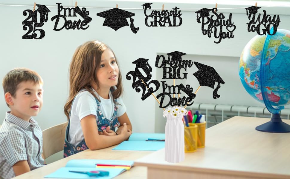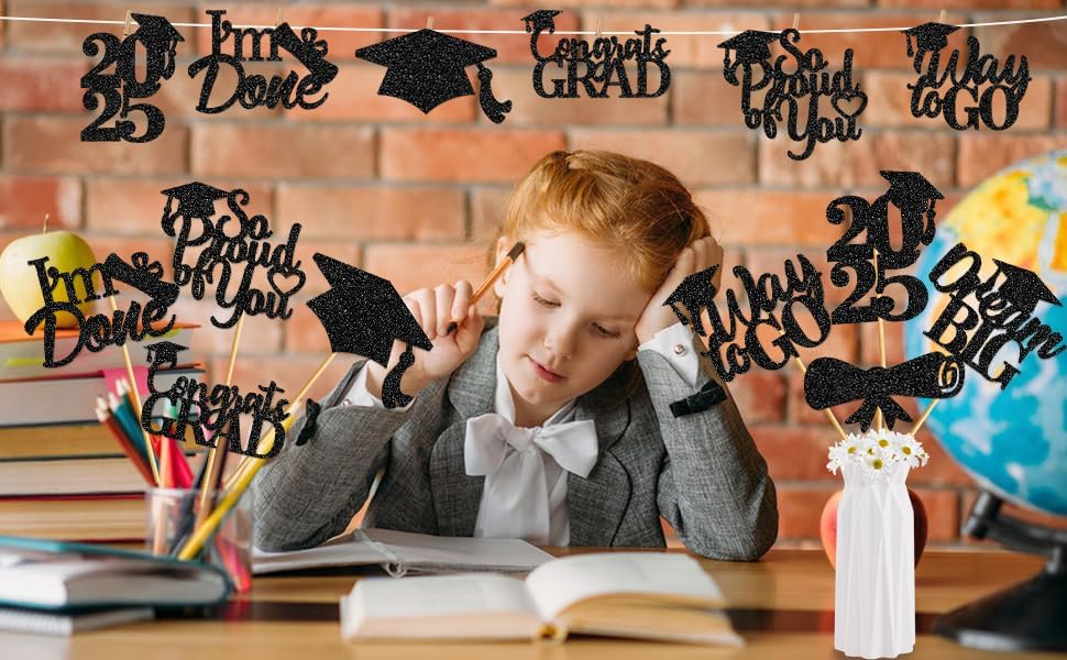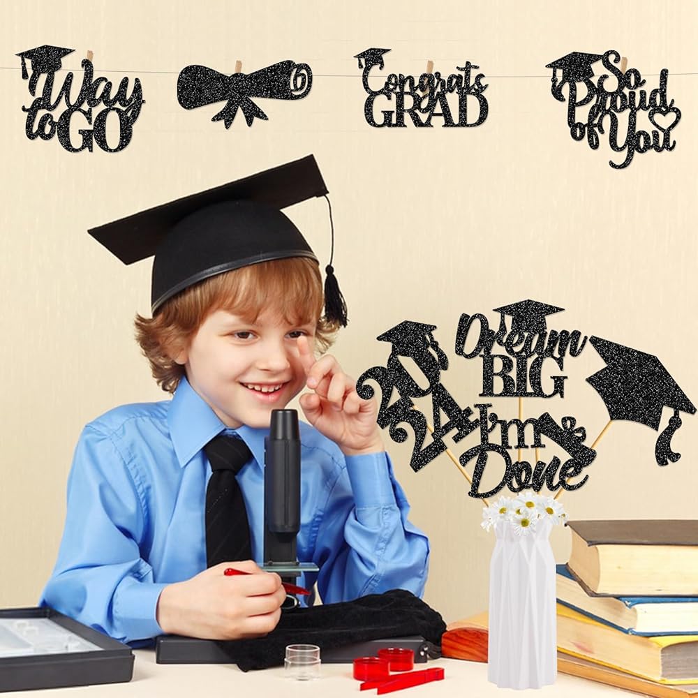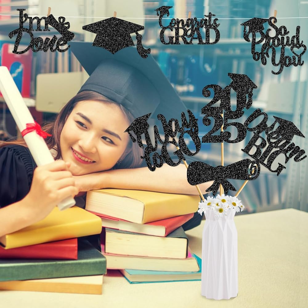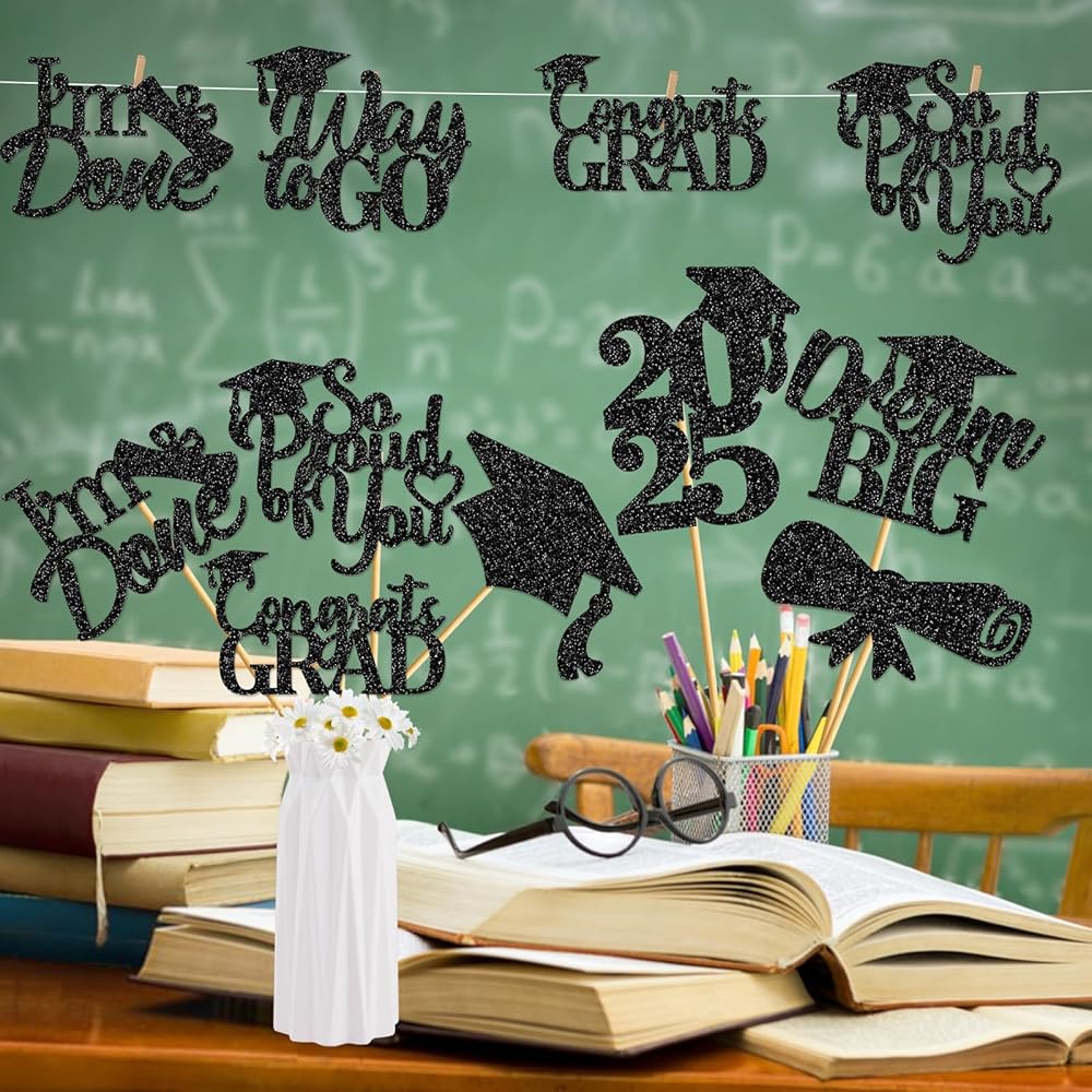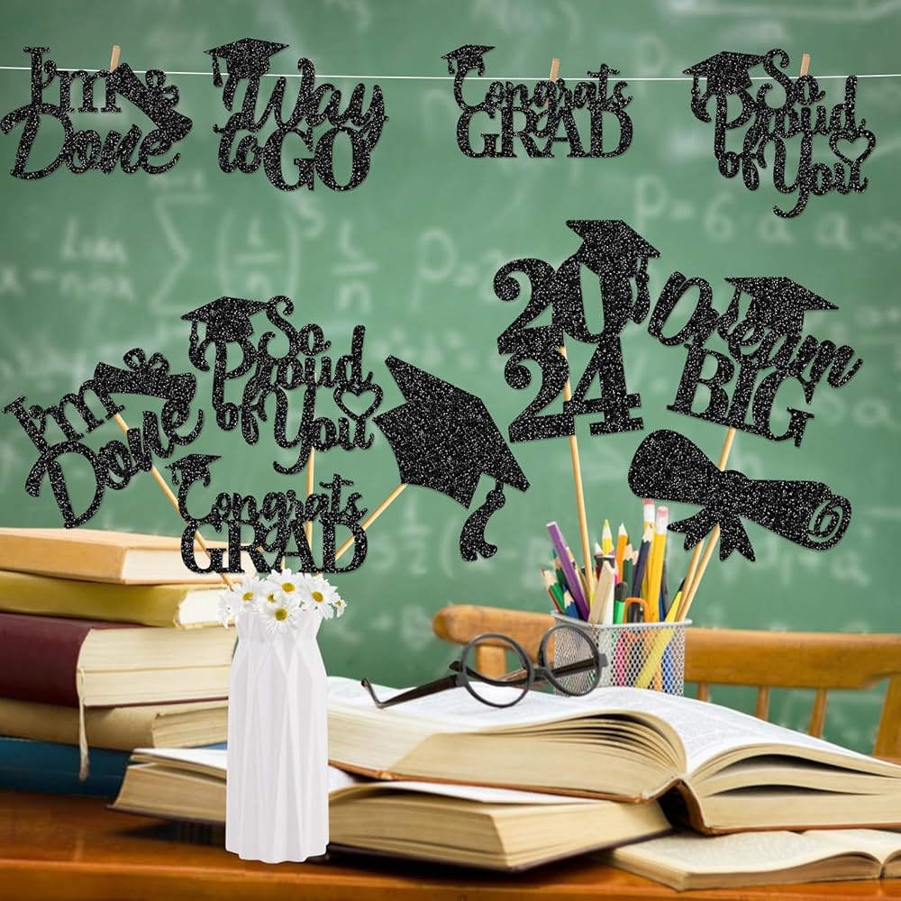 Package Include: You will receive 24Pcs graduation party table centerpieces with 6 different style design, each style has 4 pieces.Make your graduation party shine with our stunning black centerpiece!