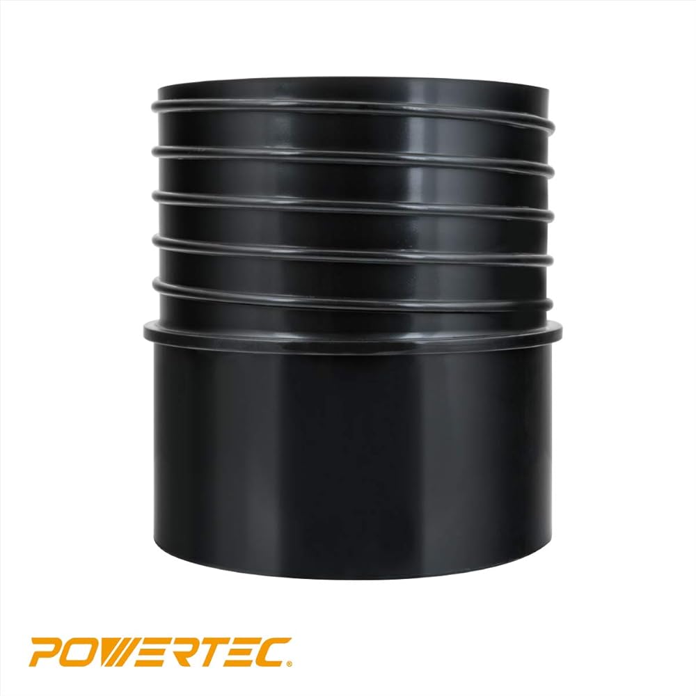 The Quick Connect Splice Dust Hose DWV Pipe Splice Adapter by POWERTEC. This splice adapter is designed to provide a seamless connection between 4” ID dust collection hoses with left hand spirals to 4” DWV (schedule 20) PVC plumbing pipes needed for clog-free drain waste vent line home systems. This adapter is a unique attachment – giving you versatility when utilizing your dust collection tools and lightweight PVC pipes. It features a threaded design that seamlessly fits inside 4” ID dust collection hoses with left hand spirals with the addition of the small diameter end that slides inside the pipe. Whether you're a hobbyist woodworker or professional plumber, this 4” splice adapter is a must have for your workshop.