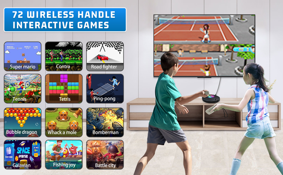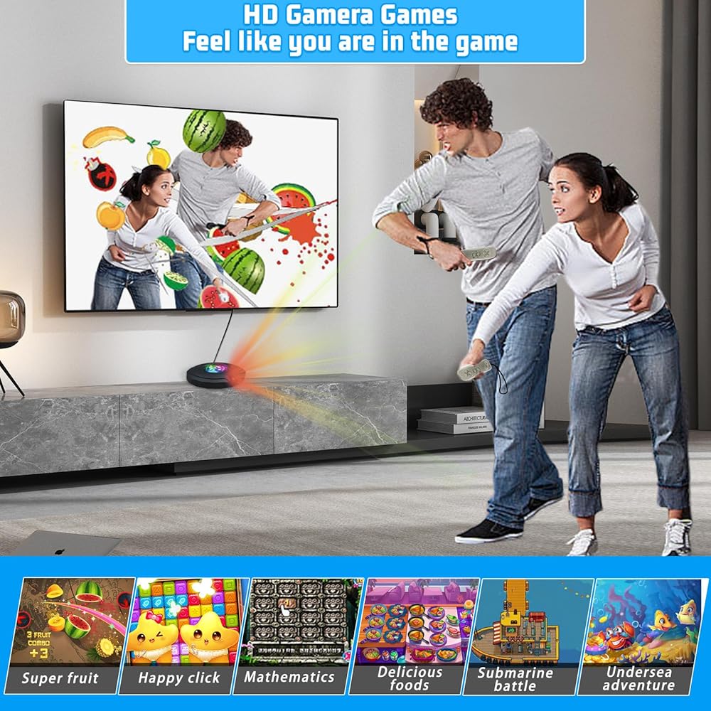 [User-Friendly & Plug and Play]—Set your TV with HDMI input. The newest upgraded IC chip provides stable and high-quality video output. Design of the combination of high-definition smart camera host and disco ball lamp, 3D camera real-time image capture, directly use body movements to control, let people interact with immersive action. The disco ball lamp creates an atmosphere for your game, dance, and party. These two wireless handles/controllers can be used together or Separately.