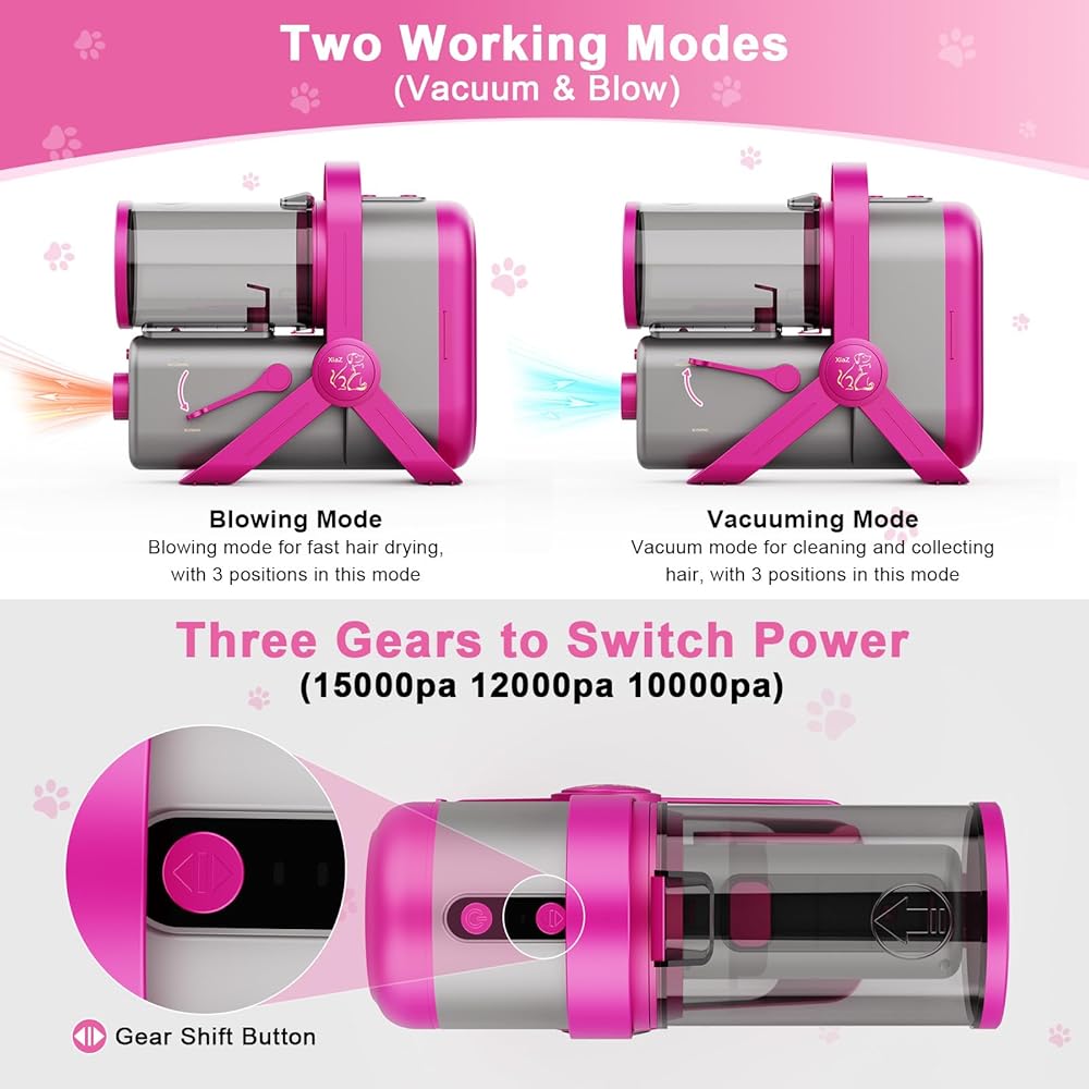 Vacuum, Dryer and Clippers 3 in 1: Unlike other traditional pet grooming vacuum that offer only a single function, XiaZ dog hair vacuum added the dryer function as a bonus, and easily switch between hair vacuum and drying modes with one click, you can easily trim, dry, comb, and collect pet's hair in one go. The dog grooming kit vacuum is designed to provide professional pet salon services at home, reducing the need for regular trips to the groomers.